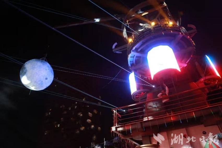 当晚,非遗文化表演“打铁花”,在现代光影技术交融下,再现新中国首炉钢水迸溅的历史瞬间;高空杂技《弯弯的月亮》,在高炉遗迹改造的演艺塔架上进行;演员们身着上世纪五六十年代的服装从老房子中出场,在“职工汇演”中让观众穿越至半个多世纪前。
