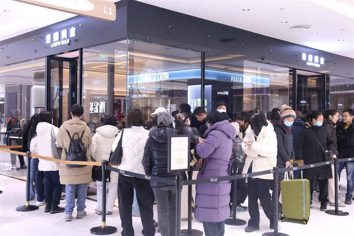 在小红书等社交平台,老铺黄金正获得热议,尤其成为年轻消费者的新宠。定价1.5万元左右的“点钻葫芦”、4万元的“玫瑰花窗”、近2万元的“金刚杵”是重点关注对象。武商MALL·世贸是全省两家老铺黄金专柜之一,2月7日起,该专柜启动促销活动,叠加商场活动,较大的促销力度吸引了来自全国的顾客。为了防止“黄牛”代购,商场在公众号设置了实名领券流程,同时要求限购5件/人,购物限时30分钟。2月16日是促销活动的最后一天,当天销售再创新高,截至20时,该商场内仍有五六十名顾客在排队,还有人推着行李箱。
