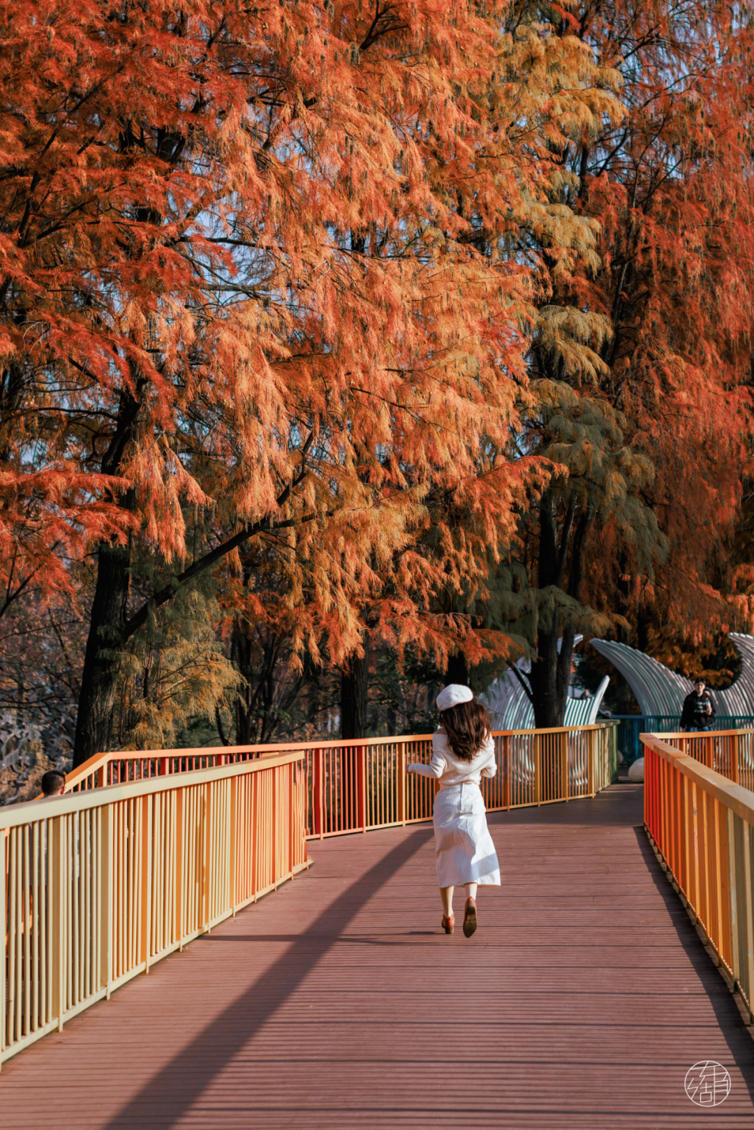以飘荡在半空中的巨型氦气球,悬浮在湖光山林里的彩虹桥,还有公园深处的小王子雕塑等彩蛋为背景,随手拍,就是梦幻的童话写真。