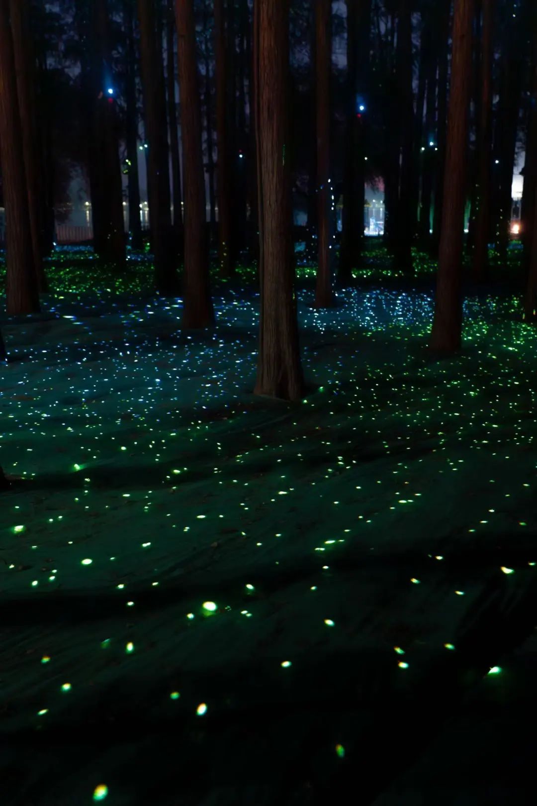 落霞水榭码头旁,杉林里有成群的「电子萤火虫」出没,即便是夜幕低垂,低头也能看到繁星点点,浪漫满分!