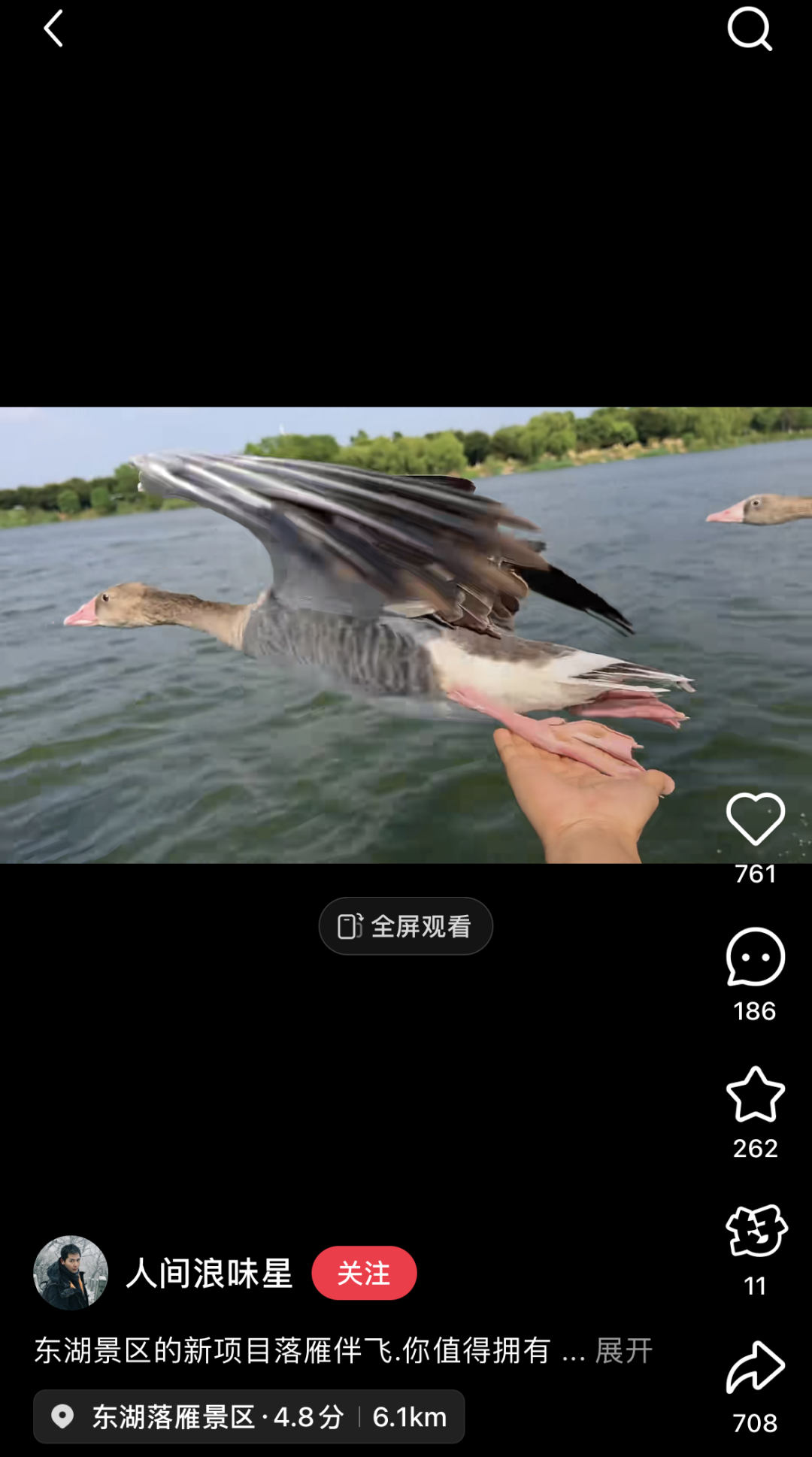 落雁景区旁的东湖生境雁岛推出的最新玩法「百雁齐飞」,在小红书吸睛无数。