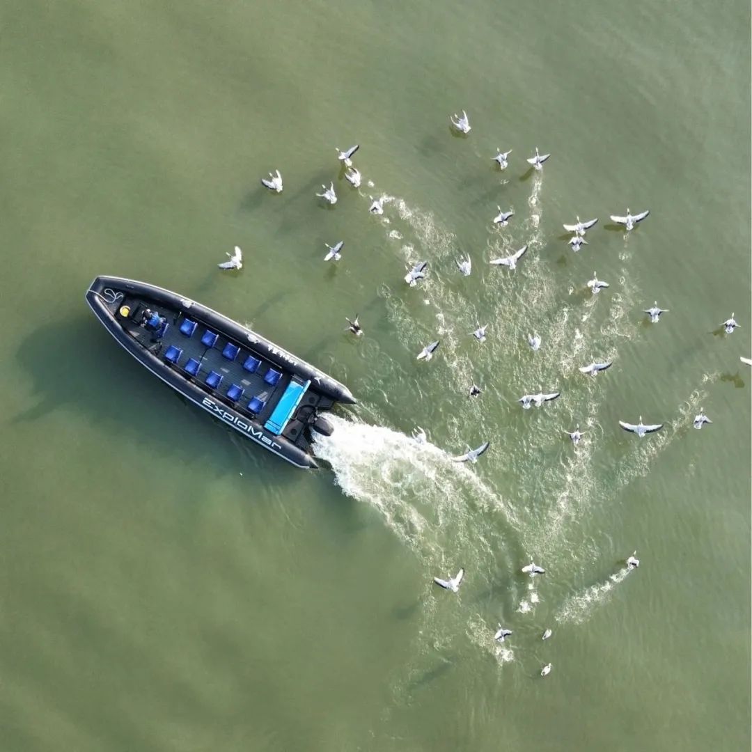 看两侧水面溅起万千碎银,听百翼齐张的声浪划破天际,闯入动态的山水名画里,好玩又有趣!