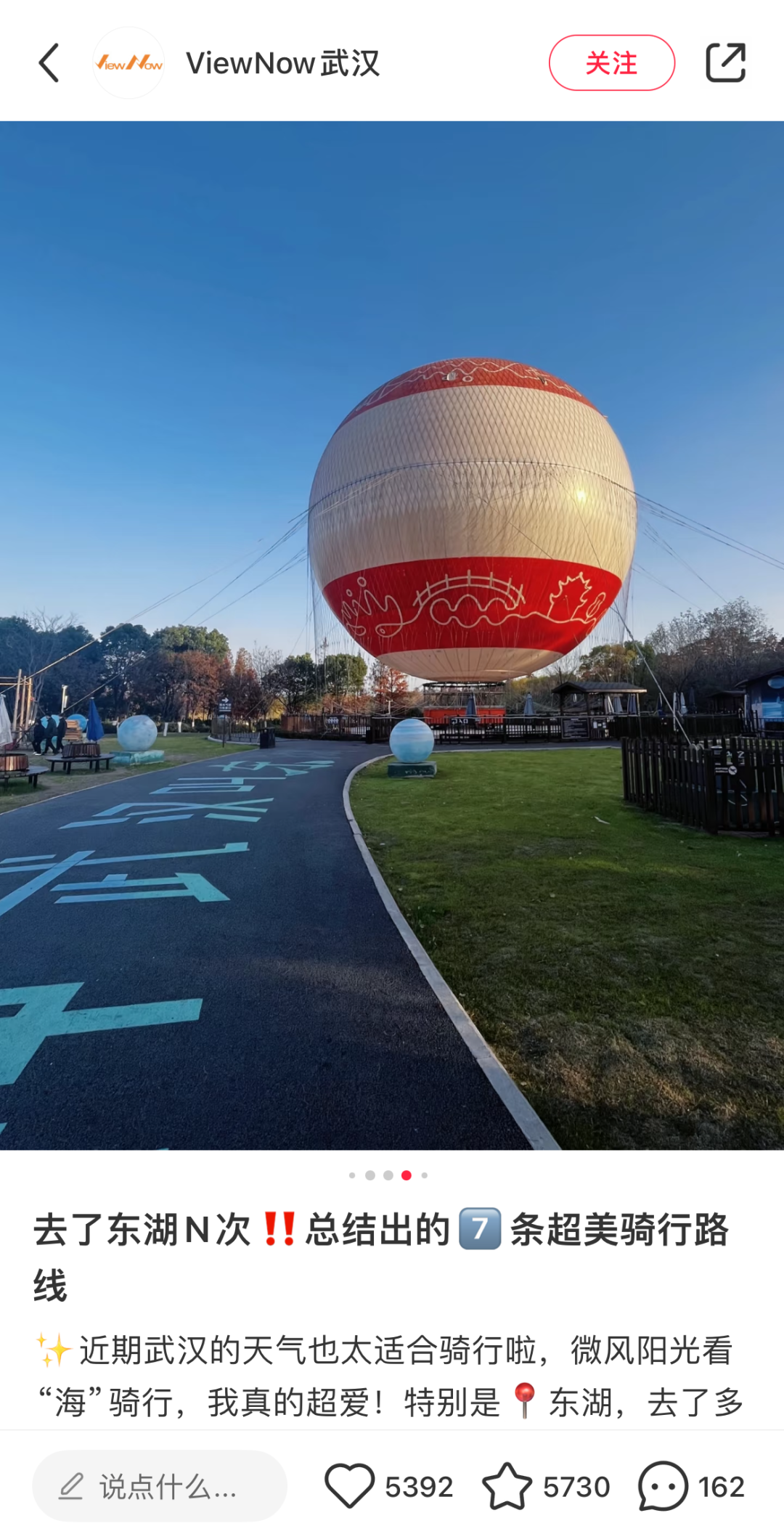 在小红书搜索「东湖骑行」,就能即刻激活这条串联起东湖沙滩、东湖彩旦观光氦气球、华侨城生态湿地公园、东湖海洋乐园等网红地标的经典线路。
