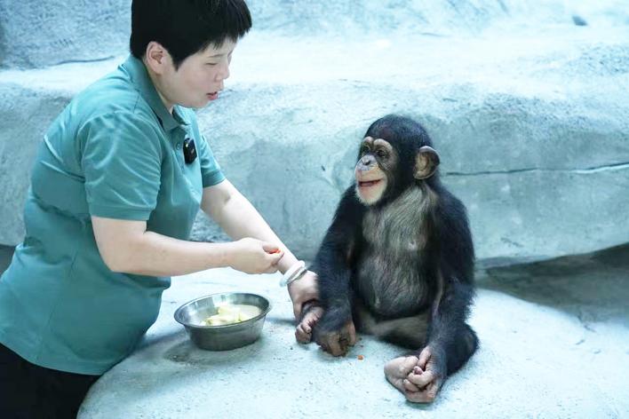 王利红接近退休年龄,令她欣慰的是,新来的一批年轻保育员,素质高,上手快,与黑猩猩相处融洽。