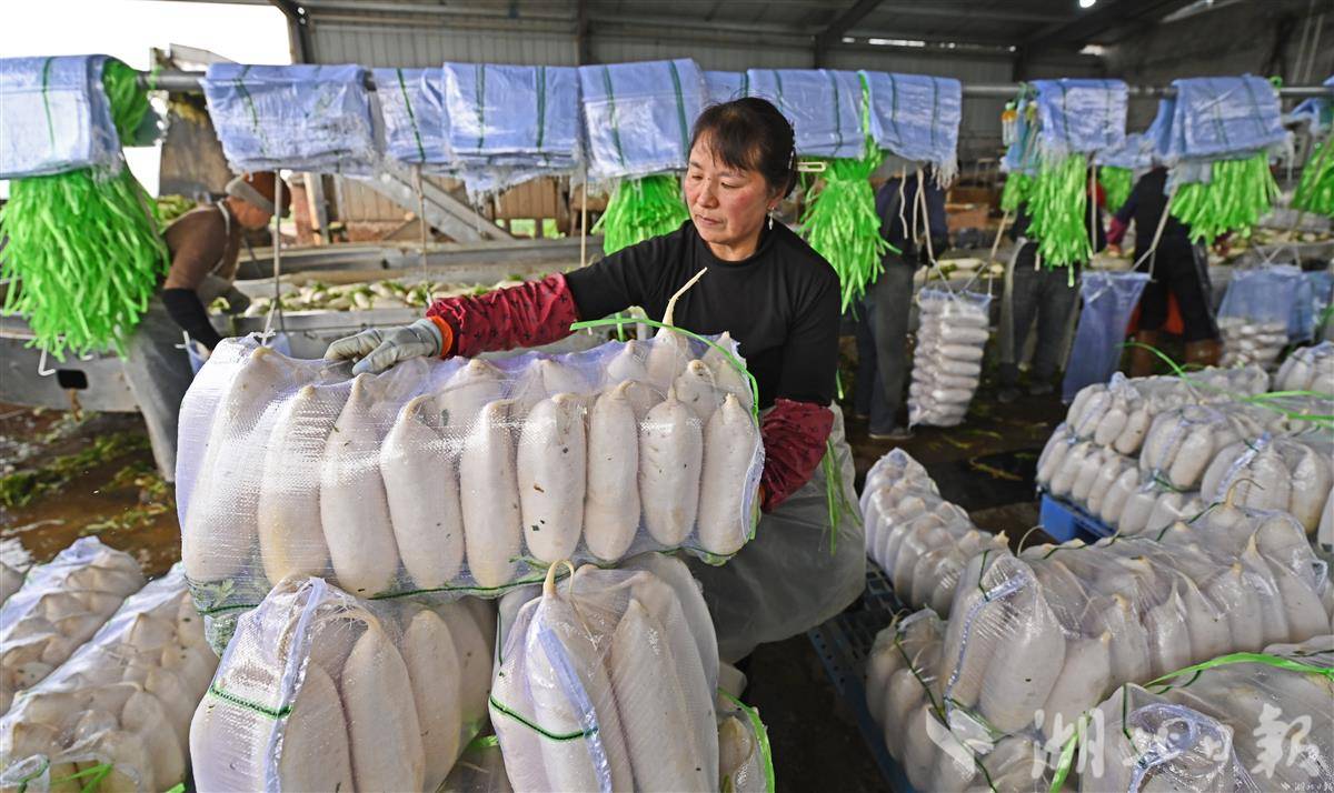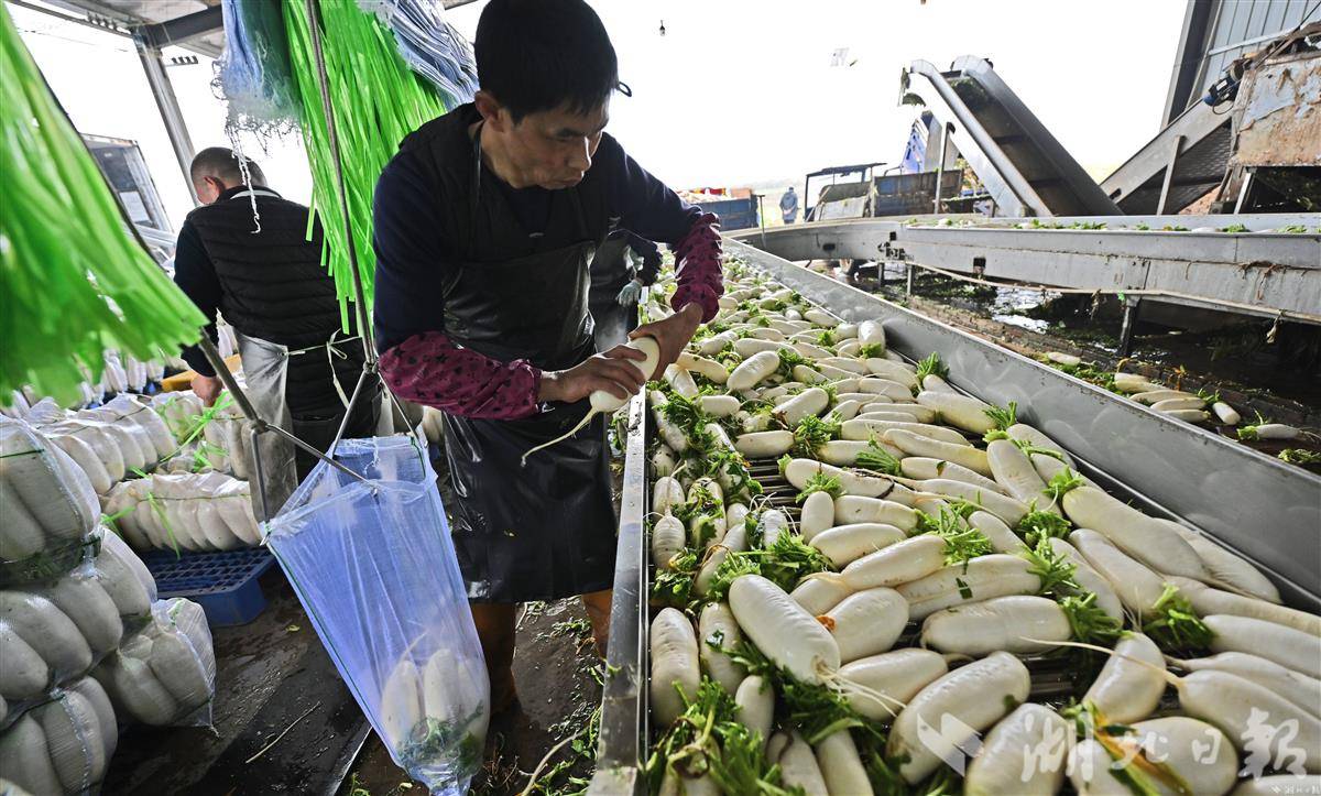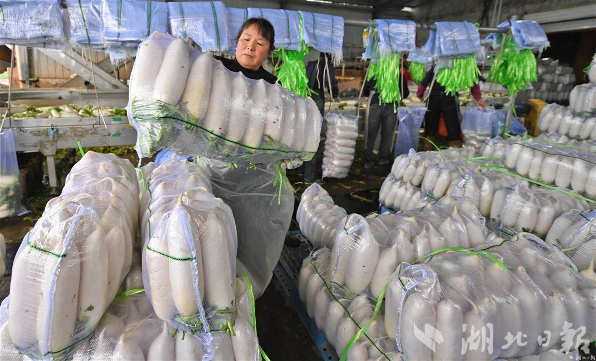 2月20日,在荆州市荆州区李埠镇春欣农业发展合作社的清洗车间里,十余名工人正在流水线前忙碌作业,经过分拣、清洗的萝卜正在装袋封装,即将通过冷链物流发往北京、上海、厦门等一线城市。据悉,这批近30吨的萝卜是合作社春菜丰收季的日常发货量。近年来,春欣农业发展合作社借助土地流转政策的东风,积极整合土地资源,共承包了近 1500 亩土地,大力发展蔬菜种植产业。据了解,荆州区是湖北省“菜篮子”工程核心区,在田蔬菜面积达24.2万亩,萝卜、花菜等各类春菜品质优良、产量可观。近年来,荆州区蔬菜产业凭借自然禀赋与政策驱动,正从传统种植向现代化全产业链转型。(湖北日报全媒记者 刘曙松 通讯员 肖敏 摄)