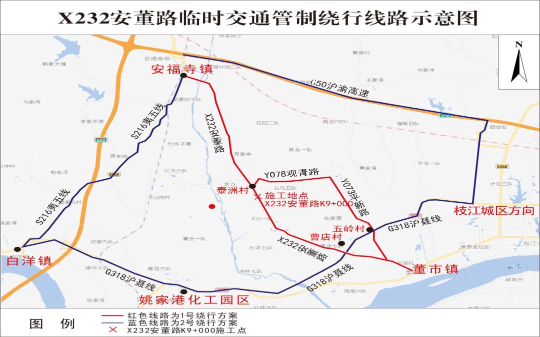 方案二:货车请绕行G50沪渝高速或绕行G318沪聂线白洋镇--S216夷五线--安福寺镇。