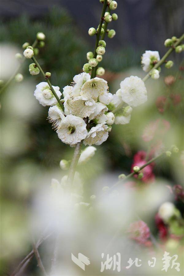 湖北日报讯(记者冯袁玥、通讯员邹卉、赵丽)近日,随着气温升高,武汉东湖梅园的珍稀品种五福垂枝、金钱绿萼迎来盛花期,少见的垂梅、绿梅给风景如画的梅园又添一份多彩。