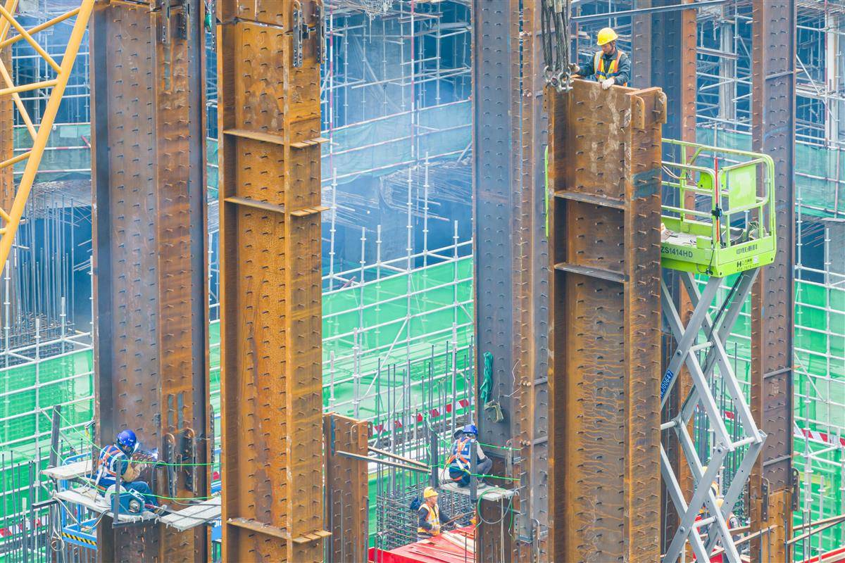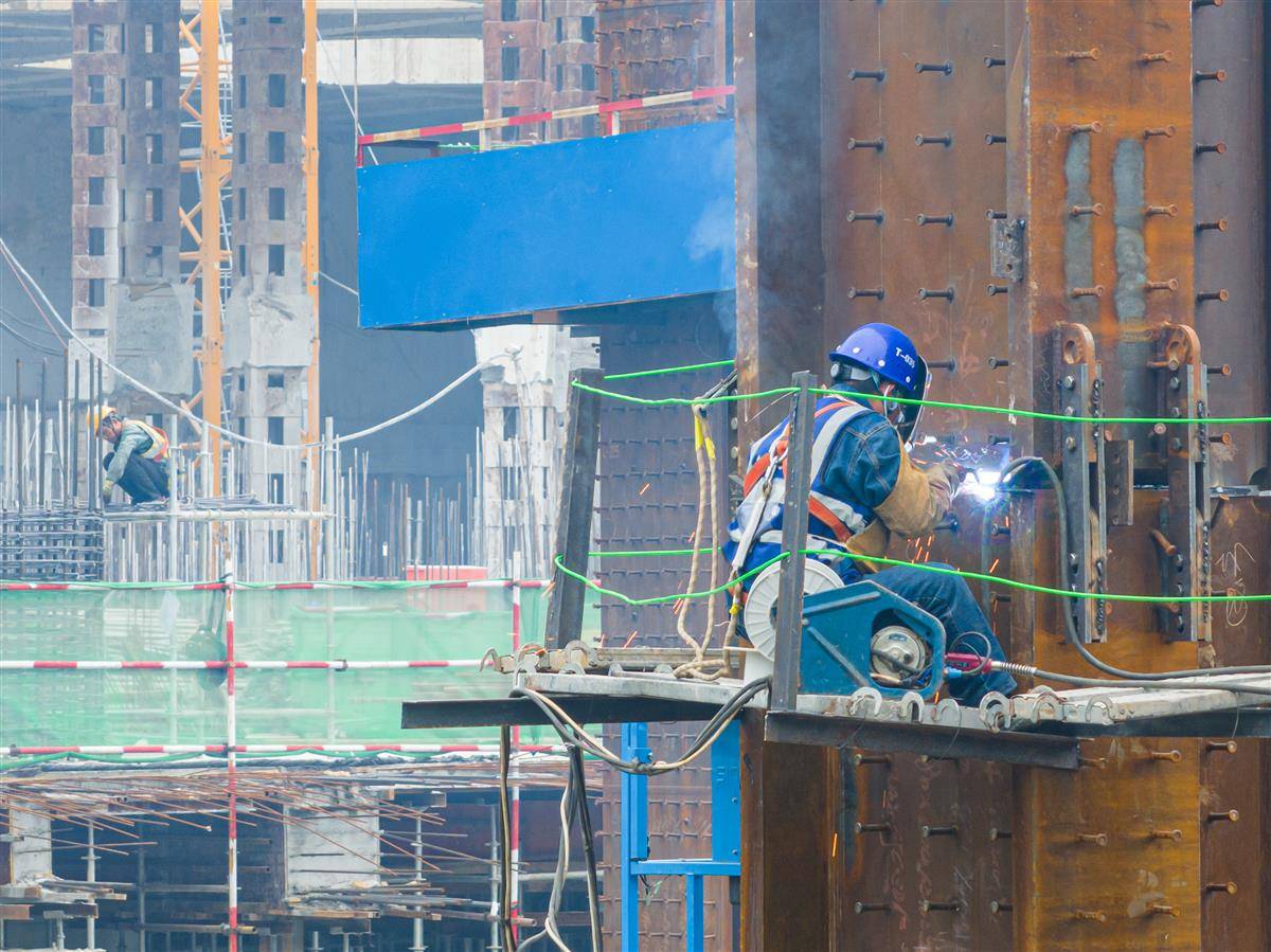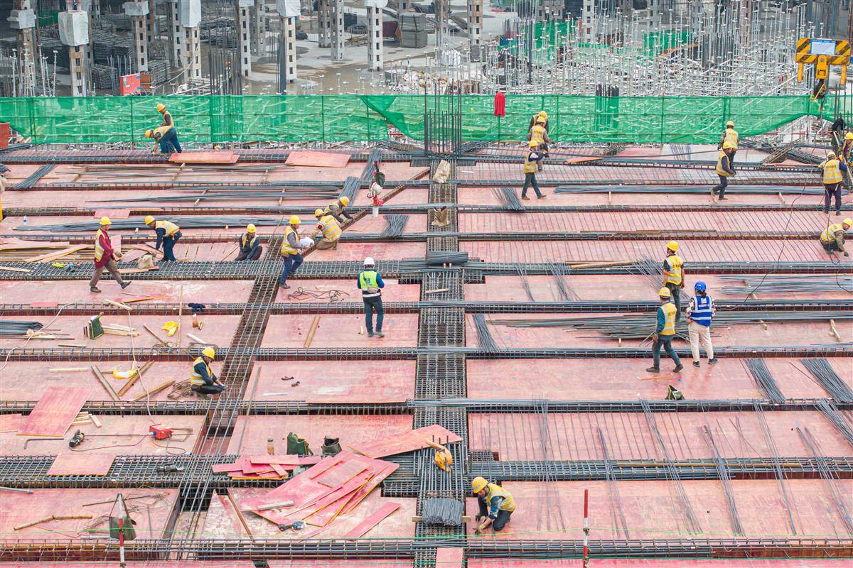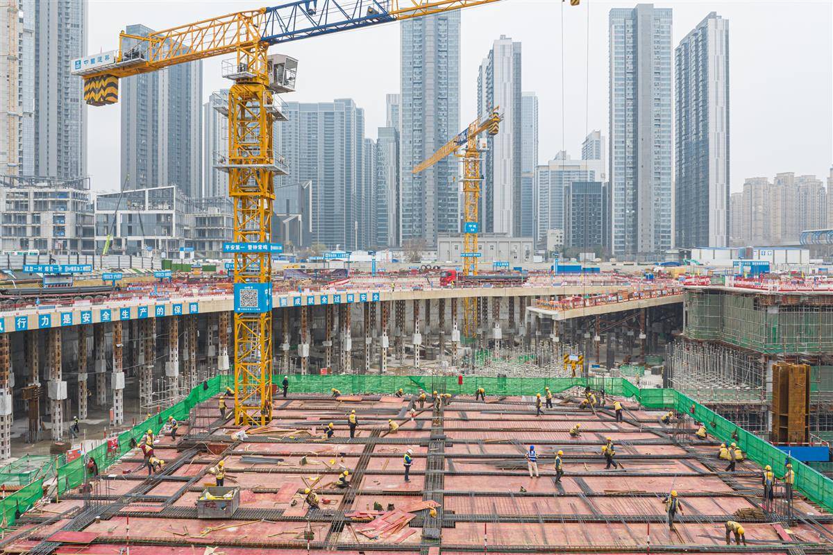 2月28日,武汉周大福金融中心项目施工现场,机械运转不停歇,400余名工人奋战在作业一线,不断加快施工步伐,呈现出一番热火朝天、大干快上的施工景象,冲刺今年6月完成地下结构施工,冲出“正负零”。