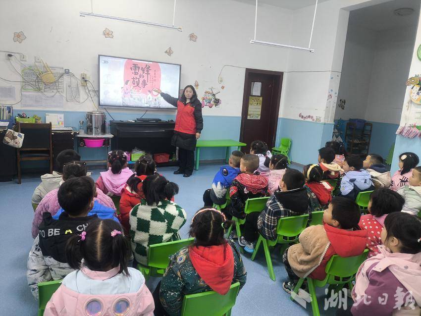 随后,老师带领小朋友们坐在一起,生动地讲述雷锋的故事。孩子们聚精会神地聆听,被雷锋叔叔乐于助人的事迹深深打动。