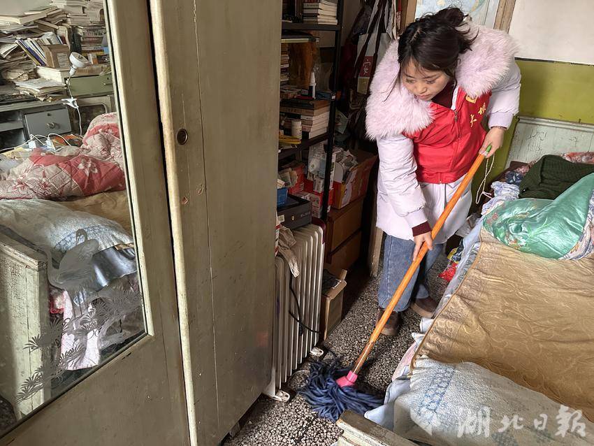 交流过后,志愿者们便纷纷行动起来,为老人们整理屋子、打扫卫生,不放过任何一个角落,让原本落灰的家具焕然一新;有的拿起扫帚,将地面清扫得干干净净;还有的帮忙整理衣物,将衣柜收拾得井井有条。在大家齐心协力的努力下,老人的家变得既整洁又温馨。独居老人陈阿姨激动地说:“孩子们,太谢谢你们了!你们就像我的亲孙女一样,给我带来这么多温暖。看到你们忙前忙后的,我心里暖乎乎的。”