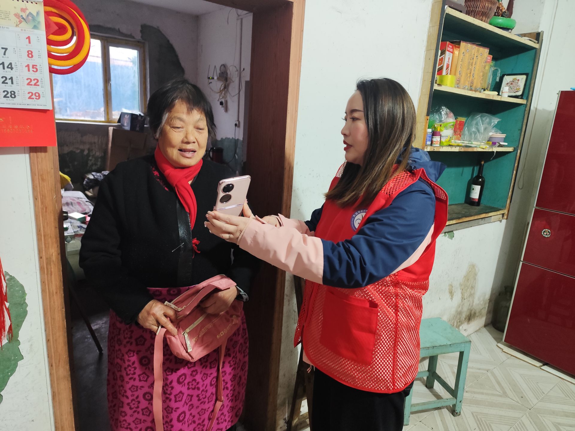 金湖街道井巷社区的工作人员上门为老年人进行养老认证