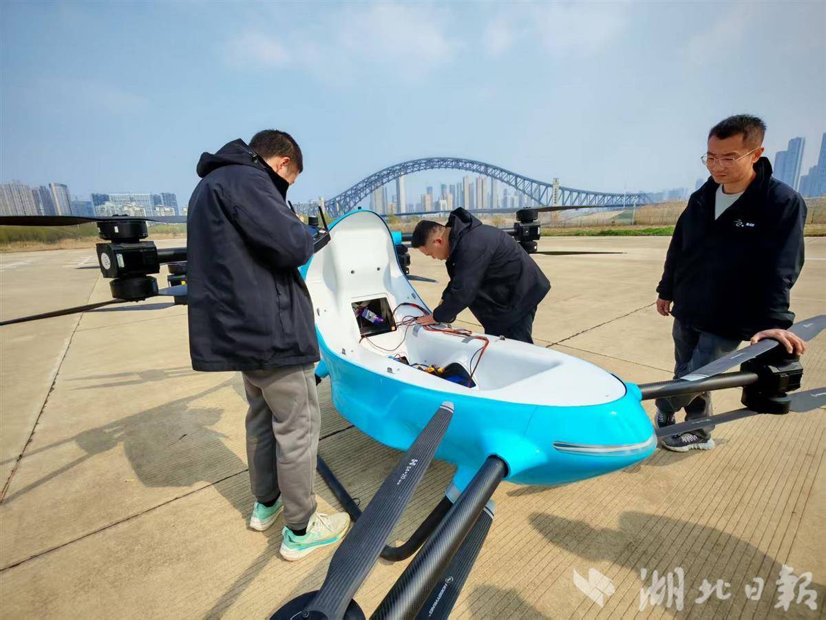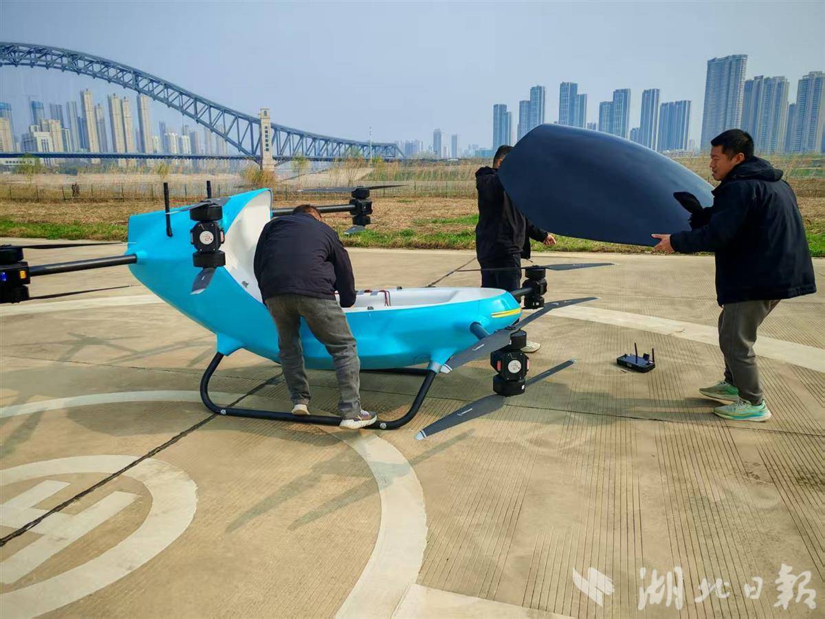 湖北日报讯(记者戴文辉)“3、2、1,起飞!”螺旋桨搅动空气,发出低沉的嗡嗡声,一架蓝色的飞行器腾空而起,在距离地面大约4米的高度盘旋起伏。