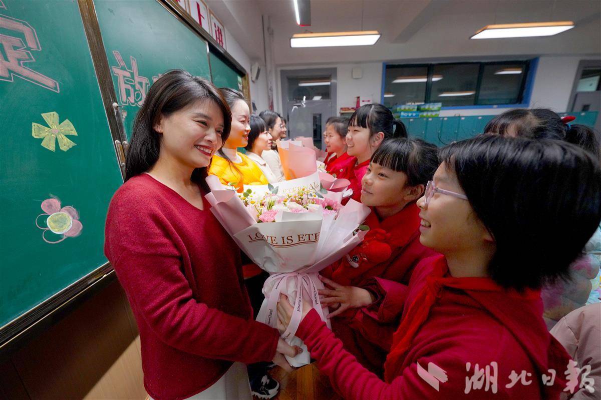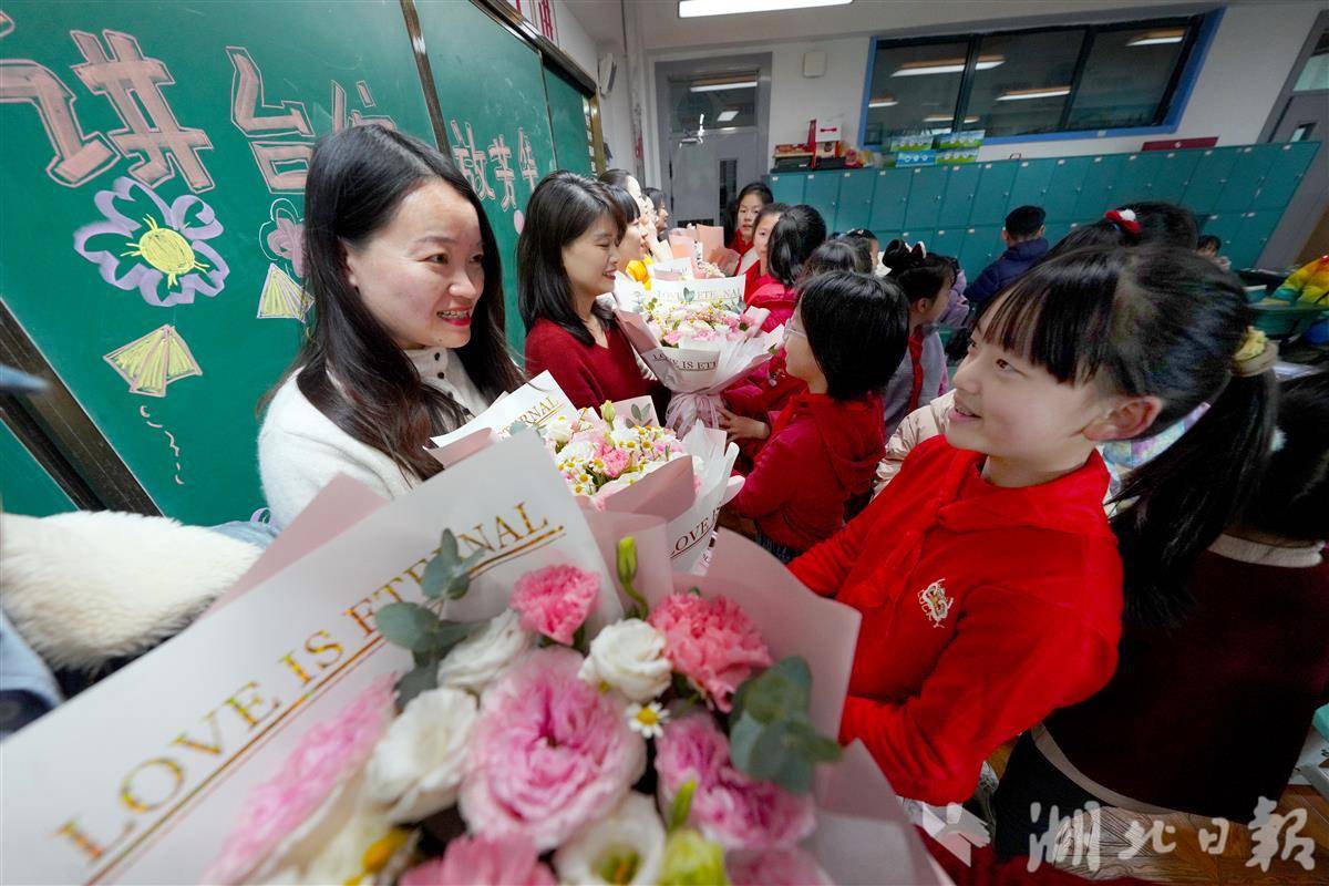 学生们为女教师们送上了亲手制作的贺卡和鲜花,表达对老师们的感恩之情。