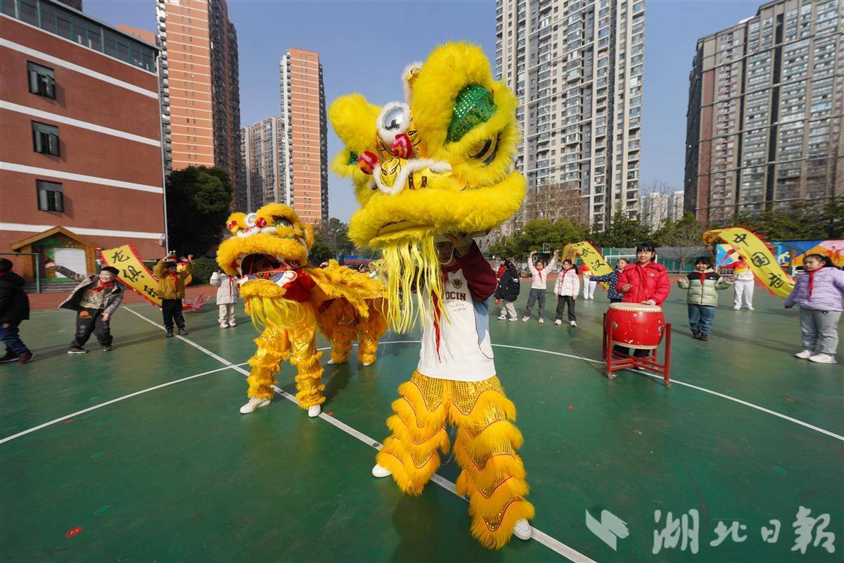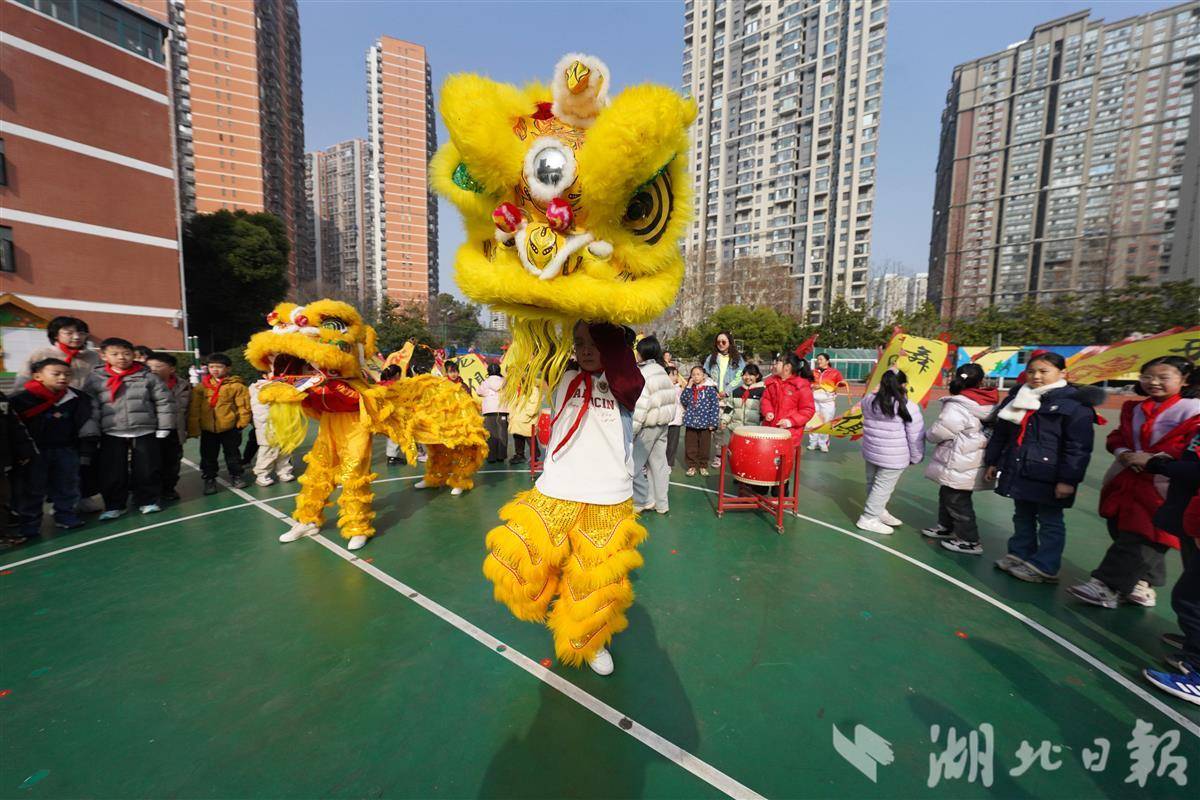 武汉市未来实验外国语学校美林校区的同学与社区舞狮队携手,共同为全校女教师献上了一场精彩纷呈的舞狮表演。