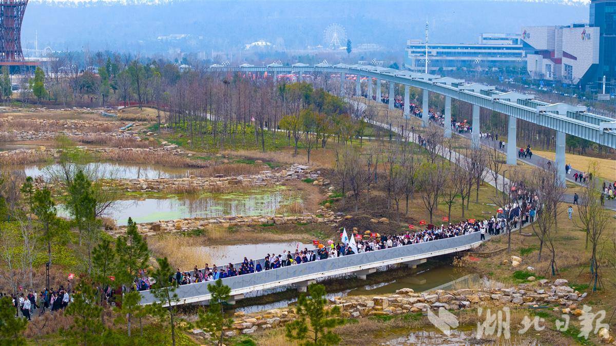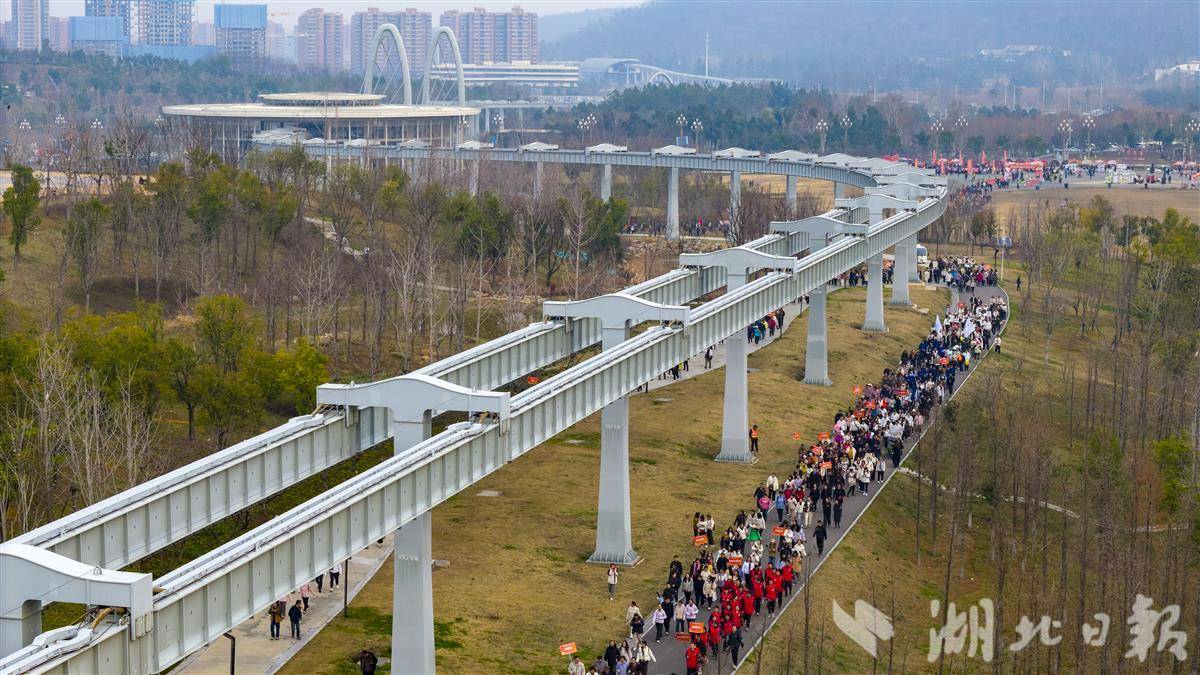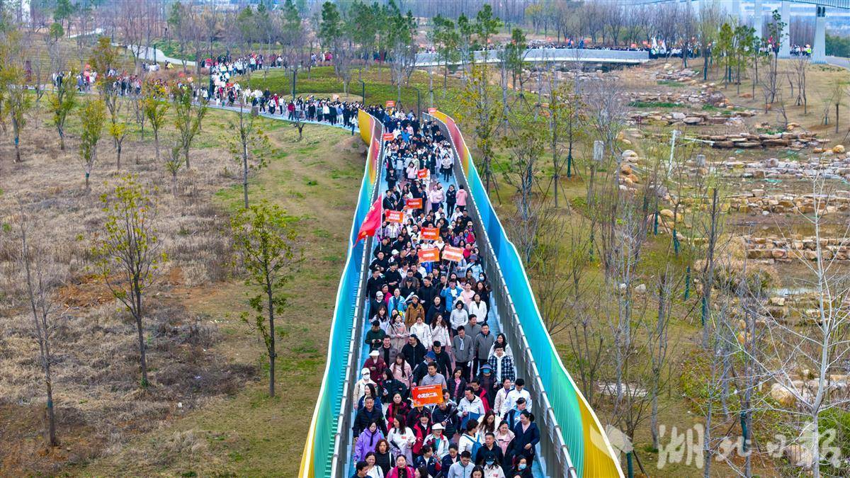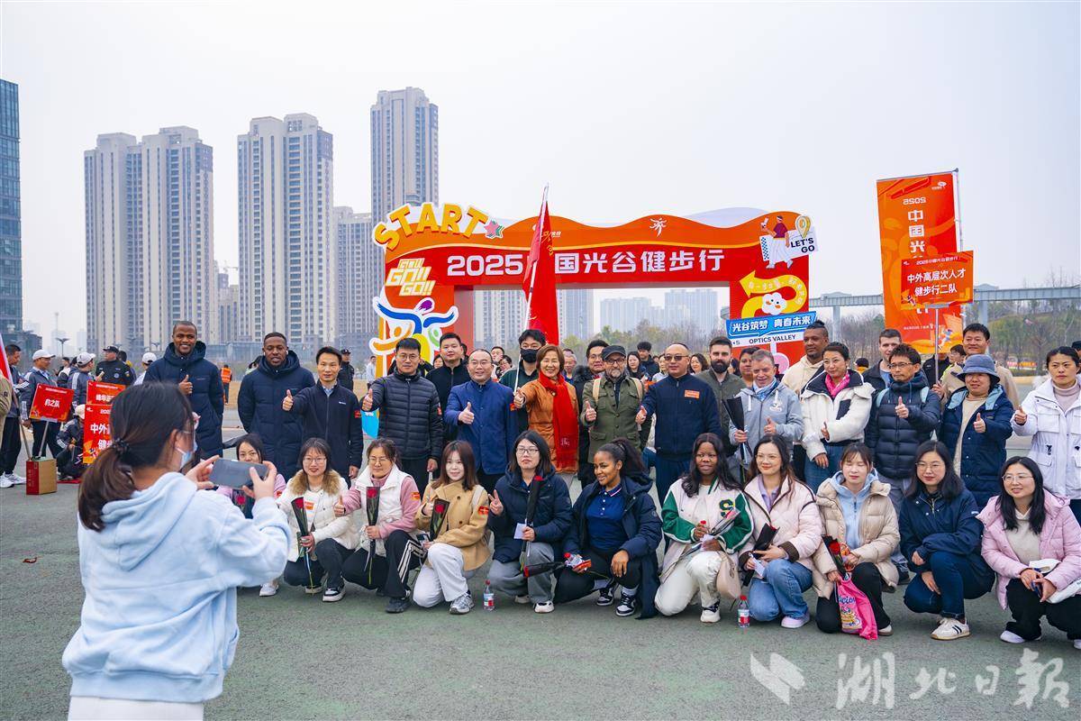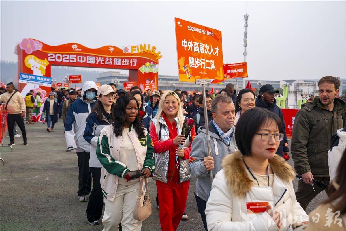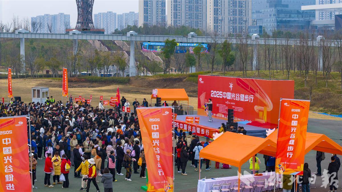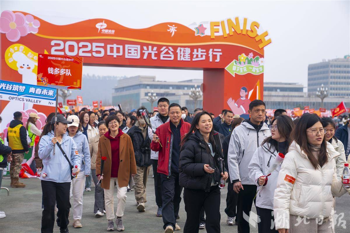 3月7日上午,2025年中国光谷第十四届体育文化节开幕式暨2025中国光谷健步行活动在光谷中央生态大走廊启幕。作为武汉年度最具影响力的全民健康盛事之一,本次活动吸引了近3000名参与者。徒步路线全长8公里,沿途设置3个打卡点,大家手拿道具,定格瞬间,留下春日美好记忆。