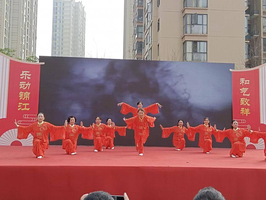 悠扬的古典乐声响起,一道道红色的身影在舞台上顺序排开。随着音乐节奏的进行,表演者们招式流畅如行云流水,衣袖翻飞间尽显东方美学。大屏幕上墨色飞扬的画面,给刚柔并济的武学动作增添了视觉震撼。传统武术与现代光影技术的完美融合,为在场居民朋友们带来了一场和谐的视觉盛宴。
