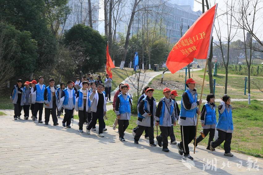 下午2点20分,思源实验学校德育处、团委、校办工作人员组织七(11)中队全体成员徒步近3公里,来到汉江河右岸沙石公园开展学雷锋守水护水爱绿护绿环保志愿者活动,对沙石公园及河边的花草树木进行拔草、浇水、捡拾垃圾等守水护水环保活动。