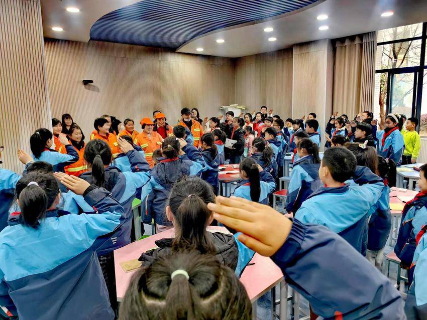 活动中,学生们通过真实案例剖析、环保知识竞赛、榜样寻访等环节,深入思考环保责任。在“寻找身边的环保榜样”项目中,学生们近距离体验环卫工人的日常工作,感受其艰辛与不易。环卫工人与学生们围坐一堂,共同商讨并制定环保公约,分享工作中的酸甜苦辣,激发了学生们对环保事业的热情与责任感。