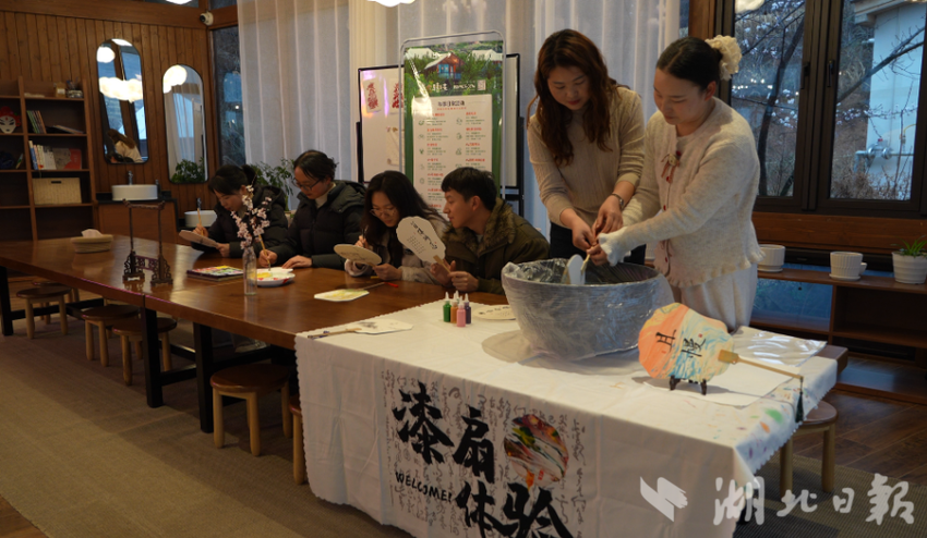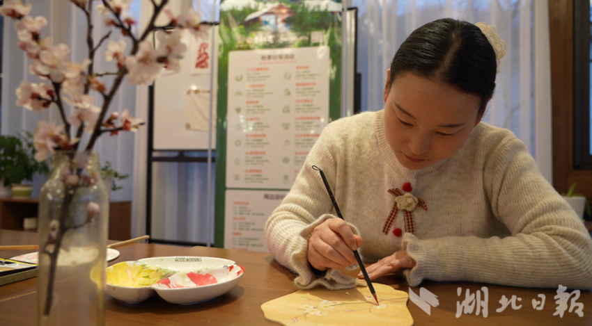 在民宿里,三五好友团坐在一起饮茶赏景,绘制“三花扇”,体验非遗项目制作心仪的漆扇,甚至搬出音响设备在户外开起了音乐沙龙等等,杏花村为游客们打造的赏花新模式,让这里的春日经济欣欣向荣。有的游客热衷于在明媚的春光中赏花,有的游客则发现了夜游杏花村的魅力,姑娘们换上汉服,在这里找到了属于自己的快乐。