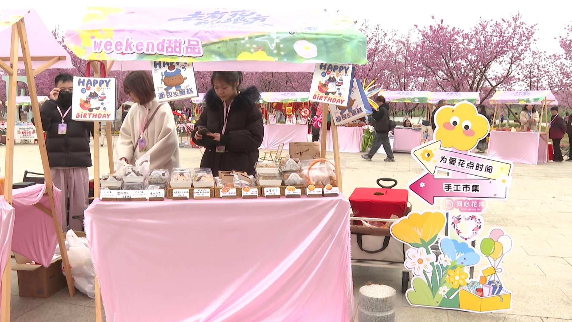 赏花客流进入高峰,为景区带来了流量,也激活了“花经济”。开幕当天景区综合收入近25万元。除了非遗体验和绿植花卉售卖,当地还在景区内外设置了特色流动摊位和集市,供农户售卖农副产品。