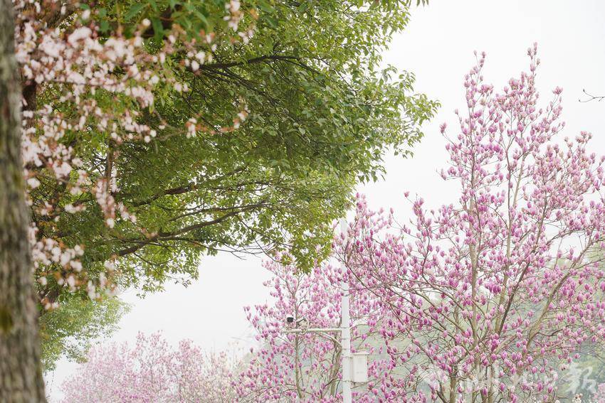 湖北日报客户端讯(通讯员朱敏、熊婷婷、江传堃)随着气温逐渐回升,宜都市陆城街道长江大道的玉兰花迎来了盛花期,白红相间的玉兰花竞相绽放,为城市披上了一层春日的盛装。