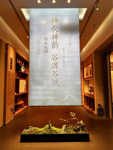 谷城非物质文化遗产展示馆位于经五十路与北辰大道交叉口处的谷城县文化中心一楼。展示馆充分挖掘谷城非遗文化资源特色,如湖北越调、黄杨木雕、石花酒、石花奎面等,打造了一个全新、独立的非遗文化展示和体验空间。