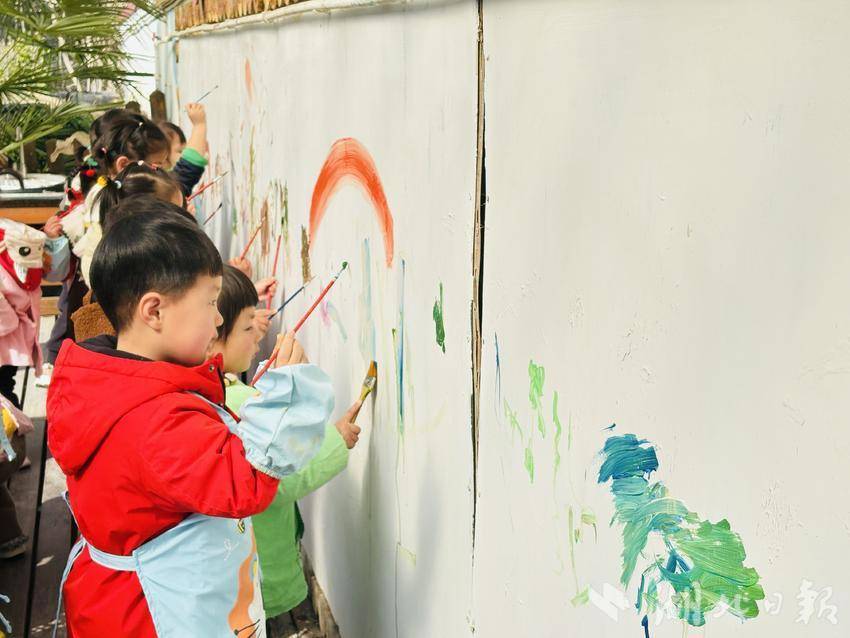 活动以温馨的“春日写生”圆满落幕。小班的孩子们在涂鸦墙前围聚,他们手持画笔,大胆挥洒色彩,用简单的线条和丰富的色彩描绘心中的春天,有的画了大大的太阳,有的画了绽放的花朵,还有的画了和小伙伴们一起玩耍的场景。中班和大班的孩子则在老师的带领下,有序走出教室,来到户外花园。他们专注地凝视着嫩绿的新芽、娇艳绽放的花朵,仔细观察着每一处自然细节,小手在画纸上灵动挥舞,将大自然的蓬勃生命力精准定格在一幅幅充满童趣的画作之中。