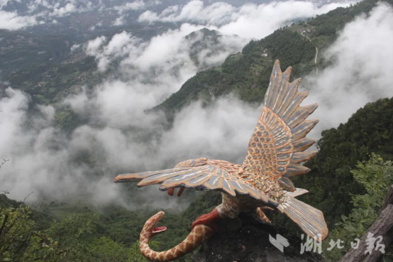 矗立在穿心岩景区的峭壁上,雕刻着一只展翅待飞的雄鹰。有人说是凤凰,有人说是雄鹰。但盘踞在山崖上展翅欲飞的姿态,像极了渴望走出大山、渴望发展致富的穿心岩村老百姓。