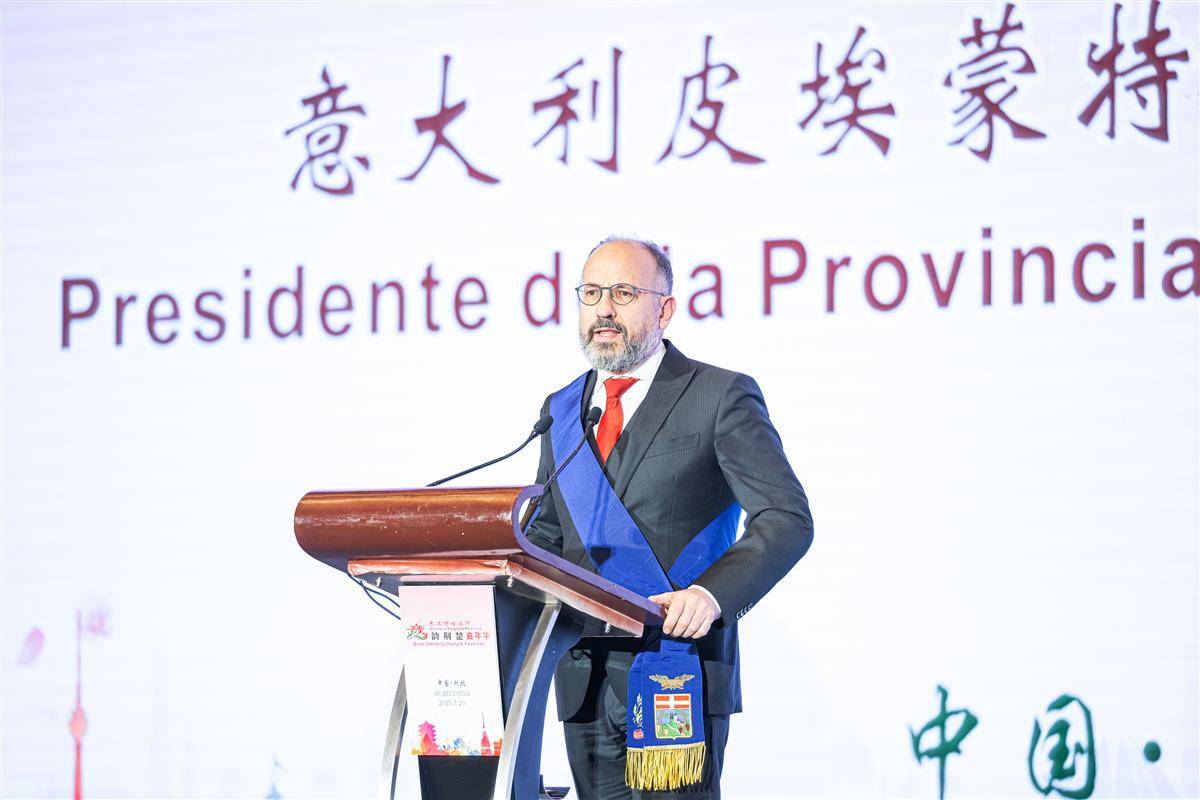 意大利阿斯蒂省省长毛里齐奥·拉赛罗致辞。(湖北日报全媒记者 任勇 摄)