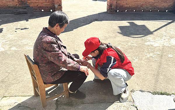 同学们来到五保户孤寡老人董奶奶家中后,为她送上学校购买的大米、食用油、水果等生活物资,希望给董奶奶的生活带来便利。随后,大家迅速行动起来,有的细心帮董奶奶修剪指甲,有的认真打扫屋内卫生,还有的陪董奶奶聊天。欢声笑语回荡在屋内,董奶奶脸上洋溢着幸福的笑容。