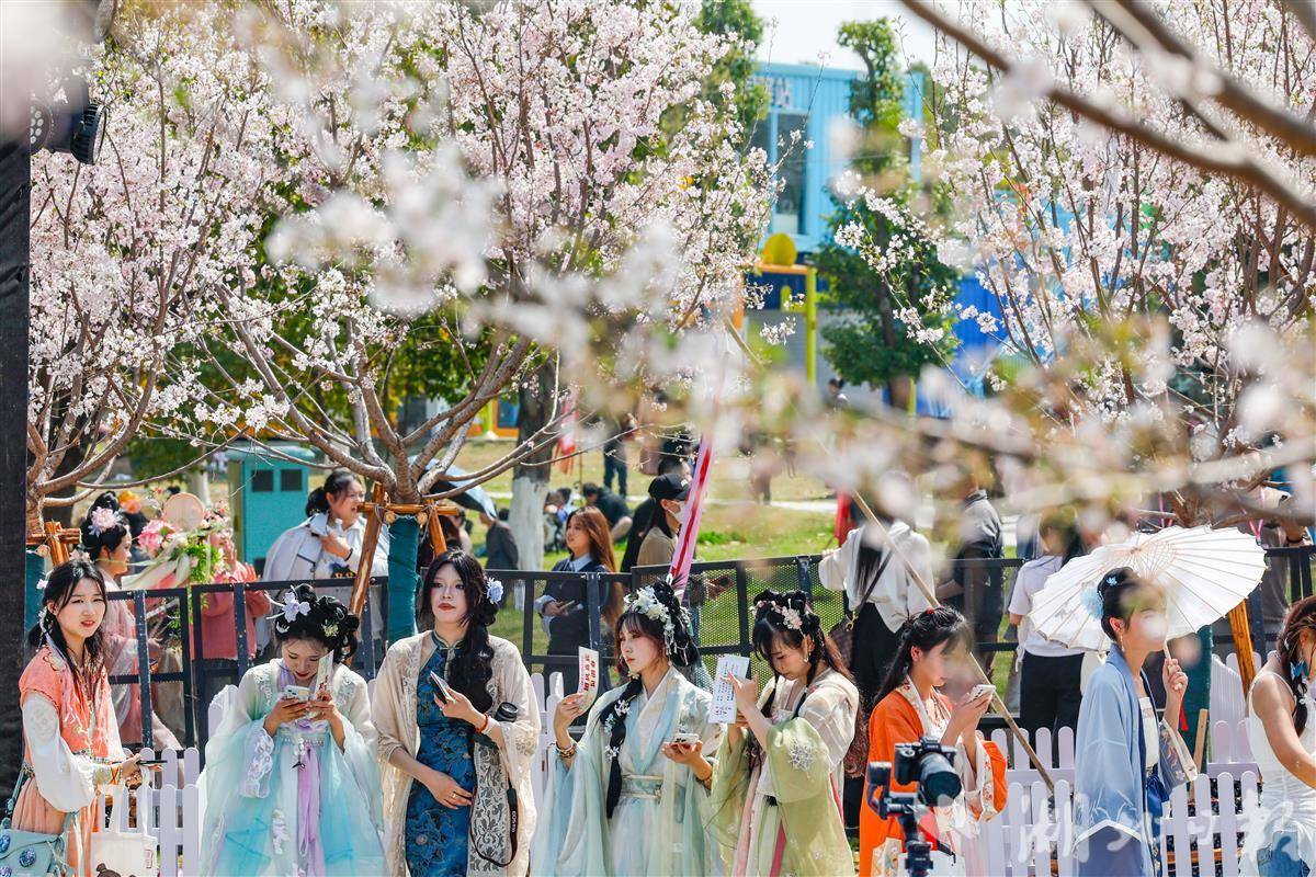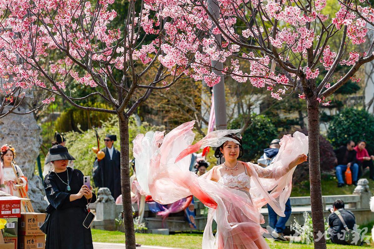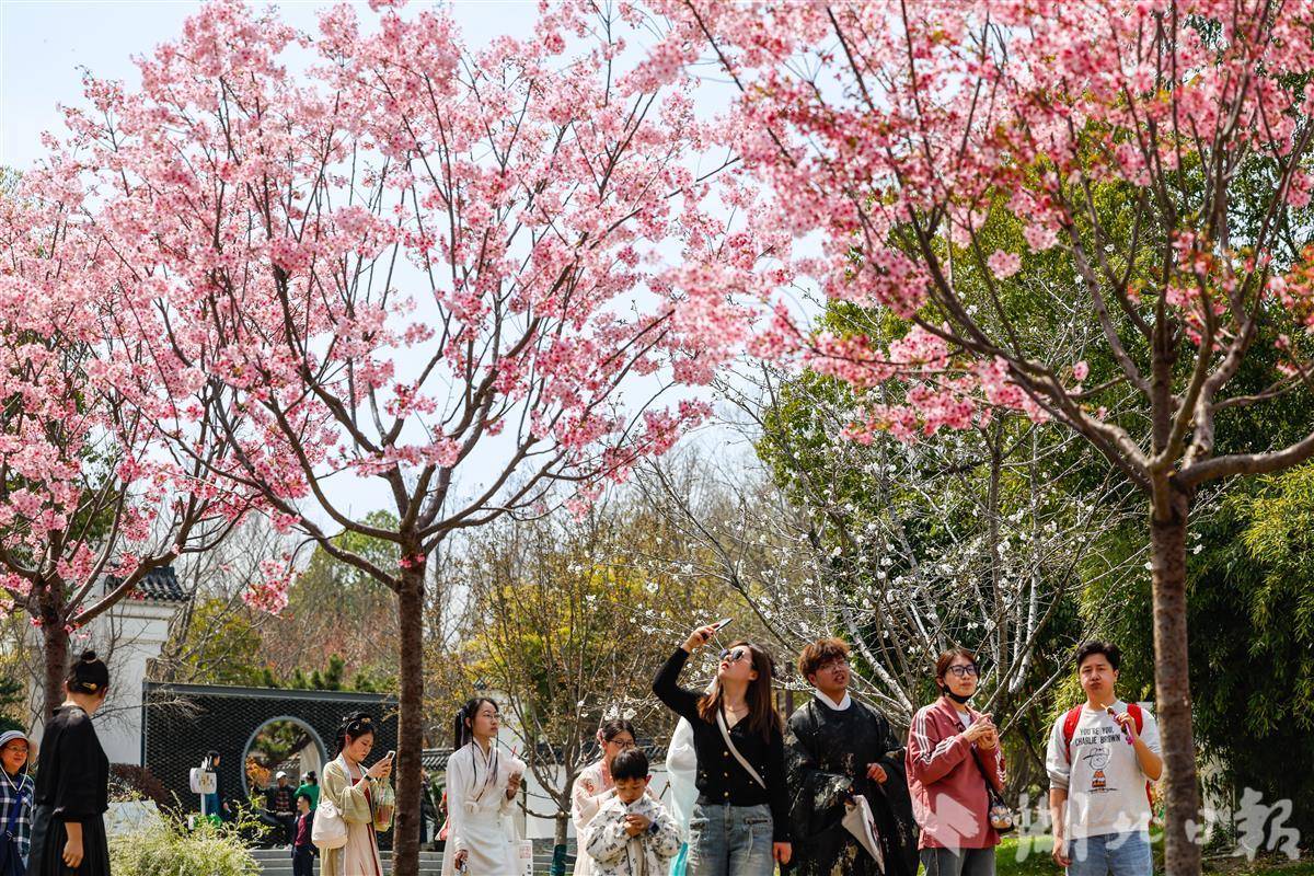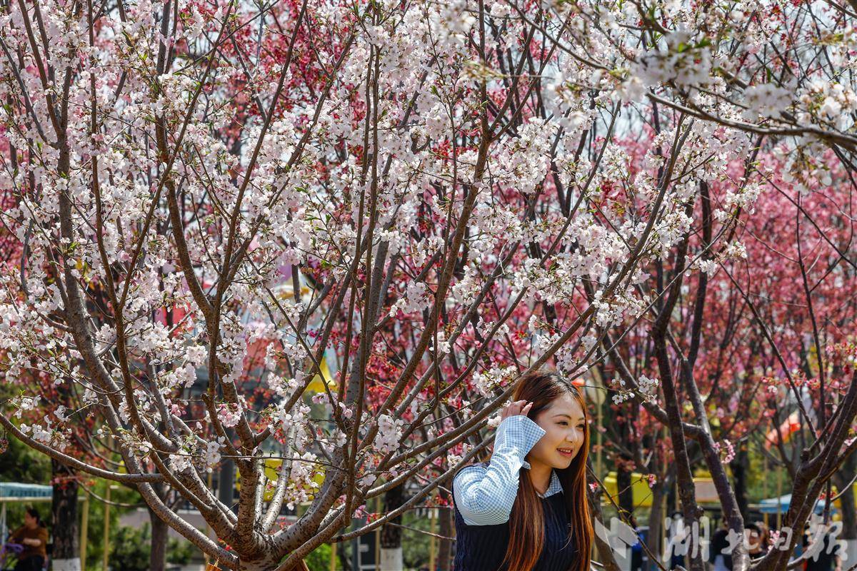 3月22日,武汉迎来温暖的周末,在武汉园博园,从东门到长江文明馆沿线花开成一条粉色的赏花带,春光无限。大批游客走进园区游玩赏花,共享春光。(湖北日报全媒记者 倪娜 通讯员 徐志刚 摄)