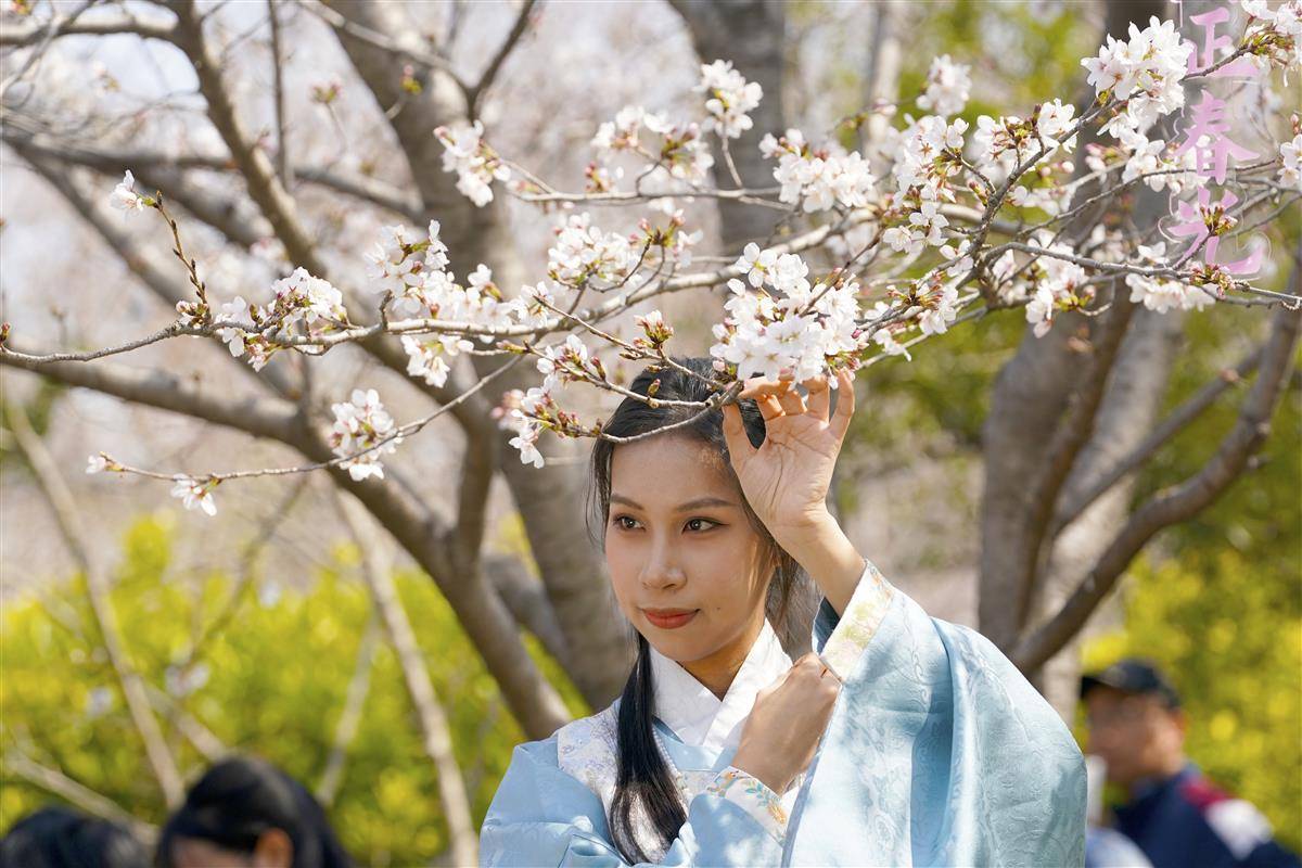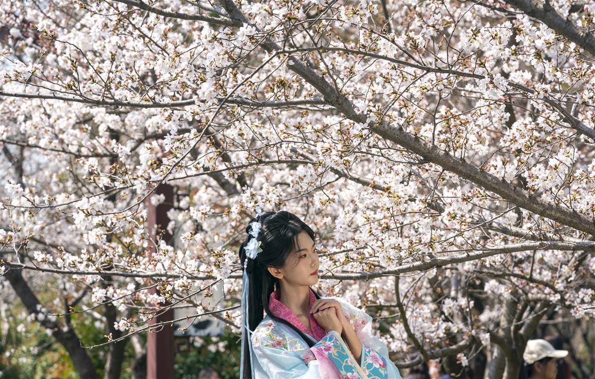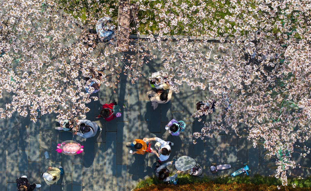 3月22日,武汉市堤角公园南门,盛开的樱花与一列轻轨列车同框。作为武汉江北唯一的江南园林式赏樱胜地,堤角公园的1500余株樱花按花期分为早、中、晚三期,红粉白绿四色交织,花期可持续至四月上旬。公园负责人提醒,近期计划到园游玩的市民游客需注意,公园早6点至晚10点开放,乘地铁1号线或21号线至堤角站,车厢内还可俯瞰花海。