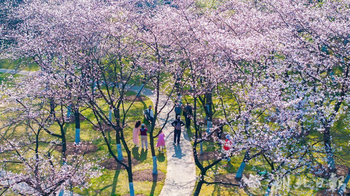 3月22日,武汉青山公园樱花盛放。(湖北日报全媒记者 柯皓 摄)