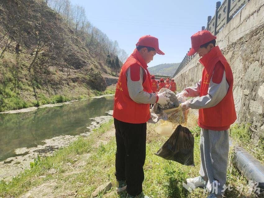 讲解结束后,学生们迫不及待地拿起手套、手钳、垃圾袋等工具,在老师的带领下有序前往指定水域。一到现场,大家迅速行动起来,三两成组,分工明确。有的学生用手钳仔细夹起岸边的烟头、纸屑,有的学生则负责撑开垃圾袋,收纳垃圾。哪怕是藏在草丛、石缝中的微小垃圾,也没能逃过他们的眼睛。在春日暖阳下,学生们的额头上布满了汗珠,但没有一个人喊累,他们用自己的双手,一寸一寸地清理着岸边垃圾,让水域周边环境焕然一新。