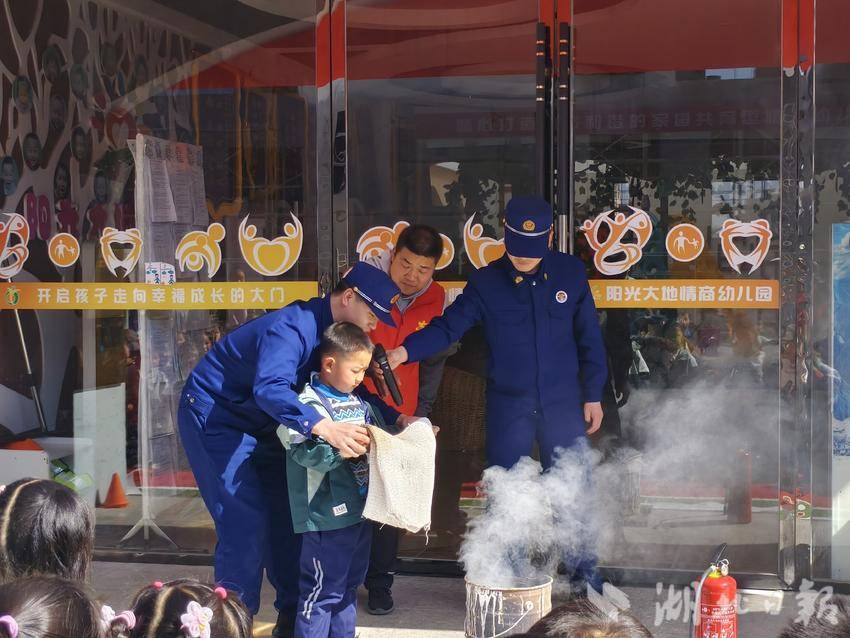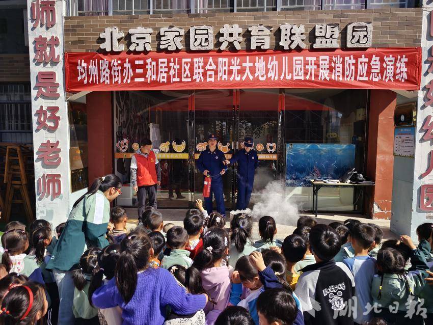 湖北日报客户端讯(通讯员 柯景木)为增强辖区幼儿及教职工的消防安全意识,提升应急避险与自救互救能力,2025年03月25日上午,均州路街道三和居社区联合市消防中队走进阳光大地幼儿园,共同开展了一场生动实用的消防应急演练活动,以“理论+实践”的方式为师生送上“安全必修课”。
