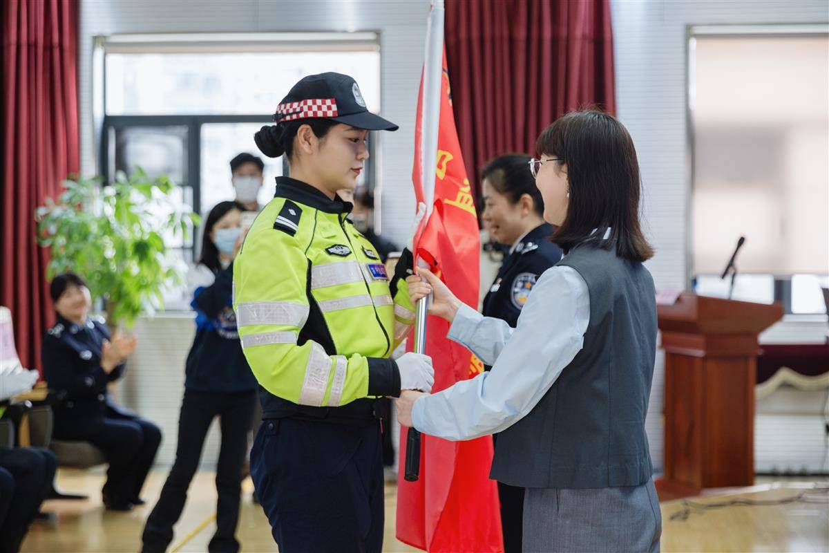 随后,女交警张倩芳带领队员们,面向队旗庄严宣誓:“我志愿加入邱益英女交警先锋队,赤胆忠心向党,淬炼忠诚警魂……”誓言铮铮,响彻全场。