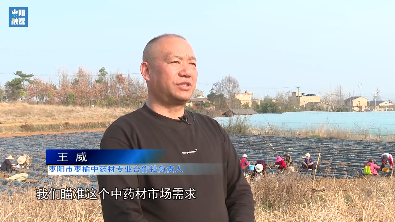 枣阳市枣榆中药材专业合作社负责人 王威:务工村民每天有60多人,高峰期用工量可达100多人。公司通过土地流转费、务工工资等渠道,每年可为村民增收近50万元。