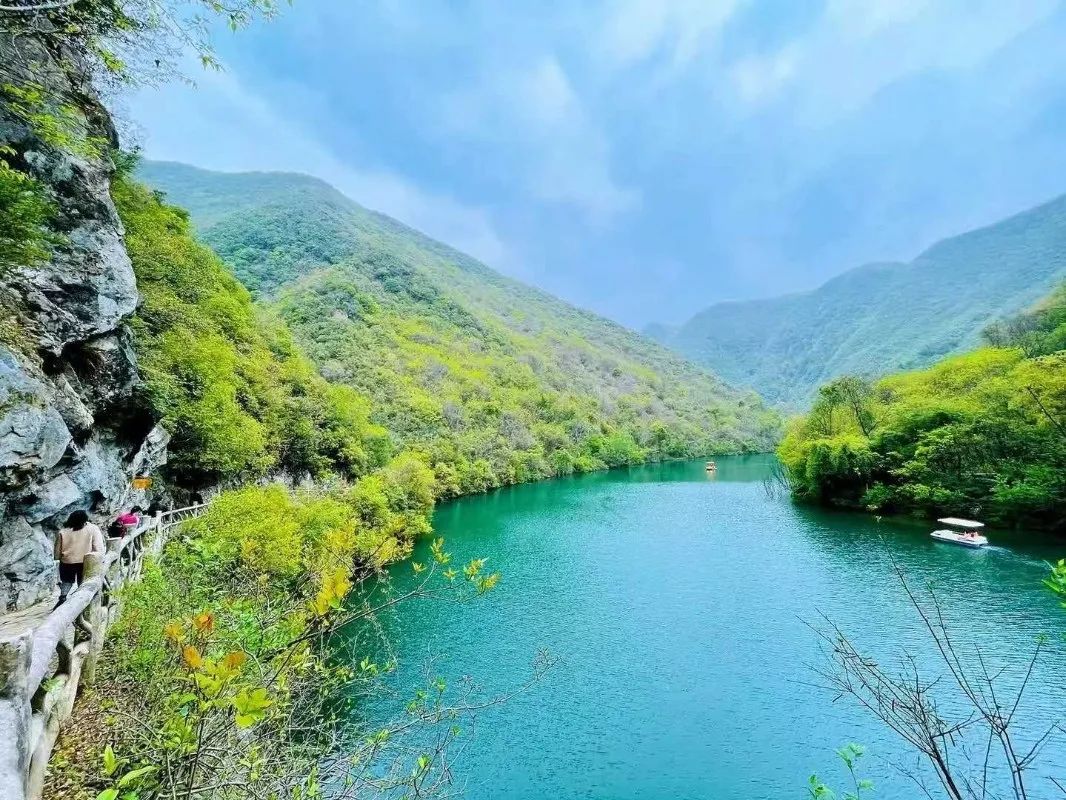春日的五龙河满目盛景,绿汪汪的溪水绵延不绝、蜿蜒而下,苍翠的树木,秀美的自然风景,富含负氧离子的清新空气,恍惚间有种人在画中游之感。在景区“喊泉”前放声呐喊,声浪越大泉水喷涌越高,最高可达30米;悬空玻璃栈道是勇敢者的乐园,低头可见碧潭如镜,抬头则是峭壁生辉;而"溪涧摸鱼"则是亲子家庭的最爱,光着脚丫在清凉的溪水中捕捉游鱼。徒步途中,可以来到五龙河小木屋小憩,品上一杯本地云雾茶,疲惫顿消。景区还设有电瓶车服务,可直达主要景点,让您轻松玩转整个峡谷。