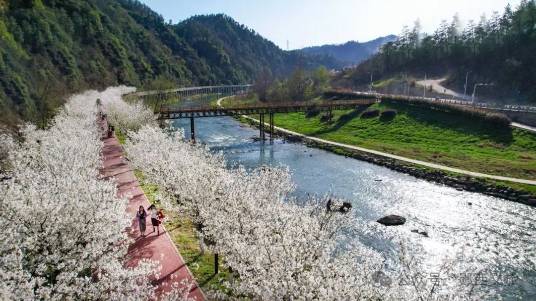 浪漫樱花+网红打卡 ,粉白樱花铺满山谷,微风拂过,落英缤纷~