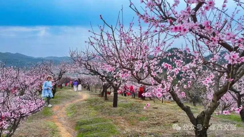 每年3月下旬,这里的千亩桃林就会变身粉色海洋。桃花层层叠叠缀满枝头,如云似霞铺满山野。沿着青石小径漫步,落英缤纷处暗香浮动,恍若置身仙境。半山腰的醉桃亭是绝佳观景台,登高远眺,层层叠叠的桃花与远山相映成趣,构成一幅天然的水墨画卷。着一袭霓裳漫步花海,随手一拍就是古风大片。山脚玄鼓山庄的时令美食,更让这场春日之约回味无穷。