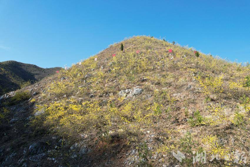 湖北日报客户端讯(通讯员李镇海、韩玉砚)春回大地,万物复苏。3月25日下午,笔者陪同十堰电视台、十堰晚报记者,深入郧阳区大柳乡连翘村采访产业发展。时值花开季节,金灿灿的连翘花漫山遍野绽放,描绘出一幅美丽的春天画卷。