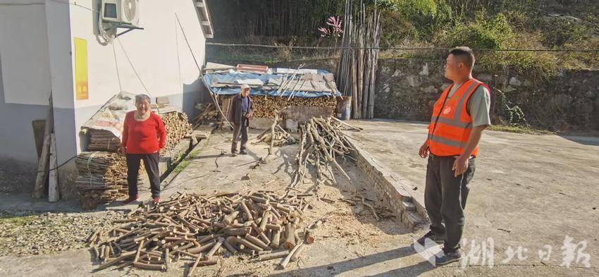 “大爷,您家这些柴禾可不能随意堆在院子边上,得找个宽敞通风的地方整理好,不然一个小火星子,就可能引发大麻烦!”护林员胡兴舟一边帮着一位大爷整理木柴,一边认真地说道。