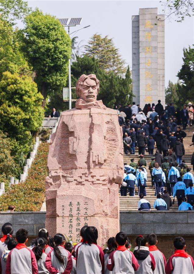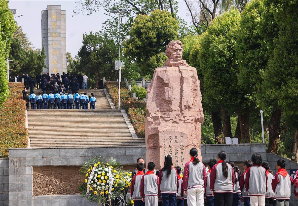4月1日,在武汉市施洋烈士陵园,社会各界敬献鲜花、缅怀英烈。