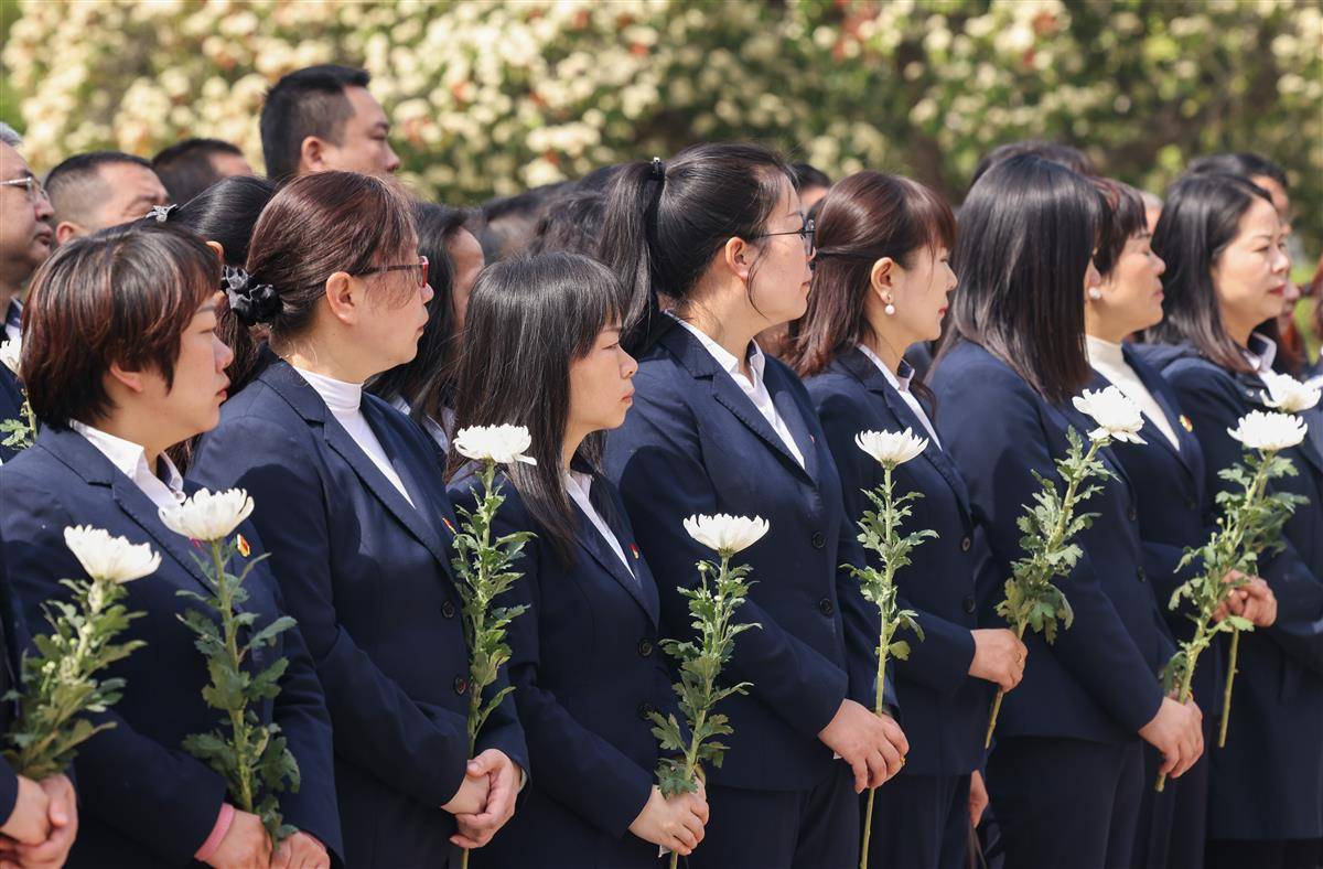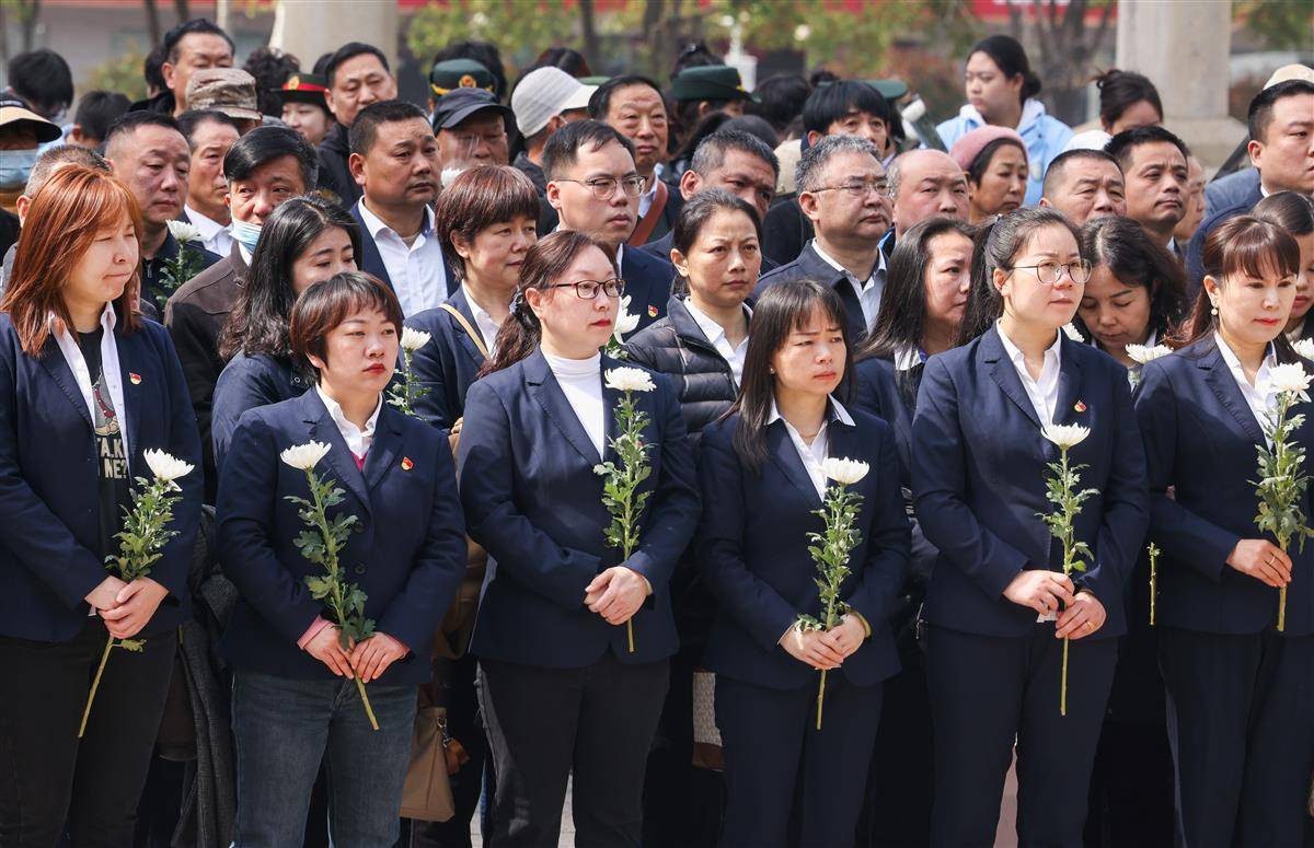 4月1日,在武汉市施洋烈士陵园,社会各界开展祭扫活动,向英烈敬献鲜花,寄托哀思。清明将至,武汉迎来祭扫英烈高峰,社会各界通过敬献花篮、重温入党誓词、聆听烈士事迹等方式,传承英雄志,汲取前进的智慧和力量。(湖北日报全媒记者 薛婷 摄)