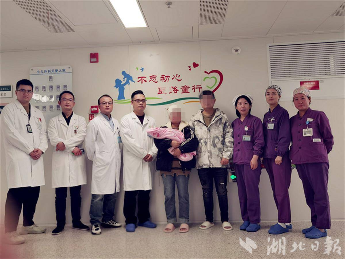湖北日报讯(记者龙华、通讯员李韵熙、孙海英)胎儿膈肌上有“破洞”,全部小肠及结肠涌入胸腔,压迫肺部和心脏,出生后随时面临呼吸窘迫甚至窒息死亡,经多学科医生接力救治,孩子从妈妈肚子里娩出第一时间完成“补洞”手术,终与妈妈和双胞胎“妹妹”团圆。3月31日,妈妈黎女士来到医院接孩子出院,喜极而泣:“像闯过了鬼门关一样,从绝望到如今一个都不少的团圆,感谢同济专家们用技术和仁心创造的奇迹。”