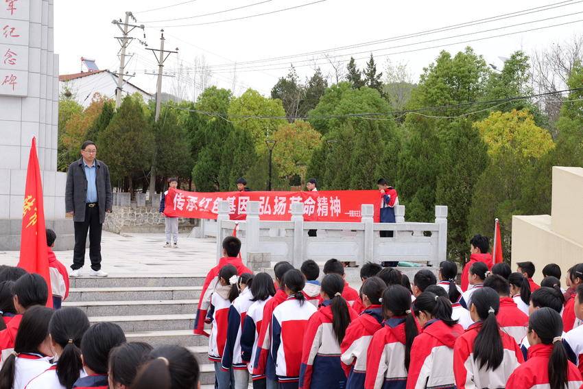 湖北日报客户端讯(通讯员 李红明)4月1日,安陆市王义贞镇初级中学组织师生前往新四军第五师建军纪念碑前,开展“传承红色基因,弘扬革命精神”清明节祭扫革命先烈活动。