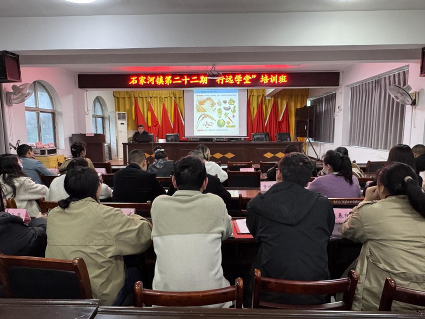 “水稻病虫害防治要坚持‘预防为主、绿色防控’理念,温度调控直接影响水稻生育期……”刘春兵结合石家河镇农业产业发展实际,运用“政策理论+田间案例”教学模式,系统讲解品种选育、水肥管理、病虫害防治等关键技术,通过“课堂授课+互动答疑”方式,帮助干部掌握农业科技“硬本领”。