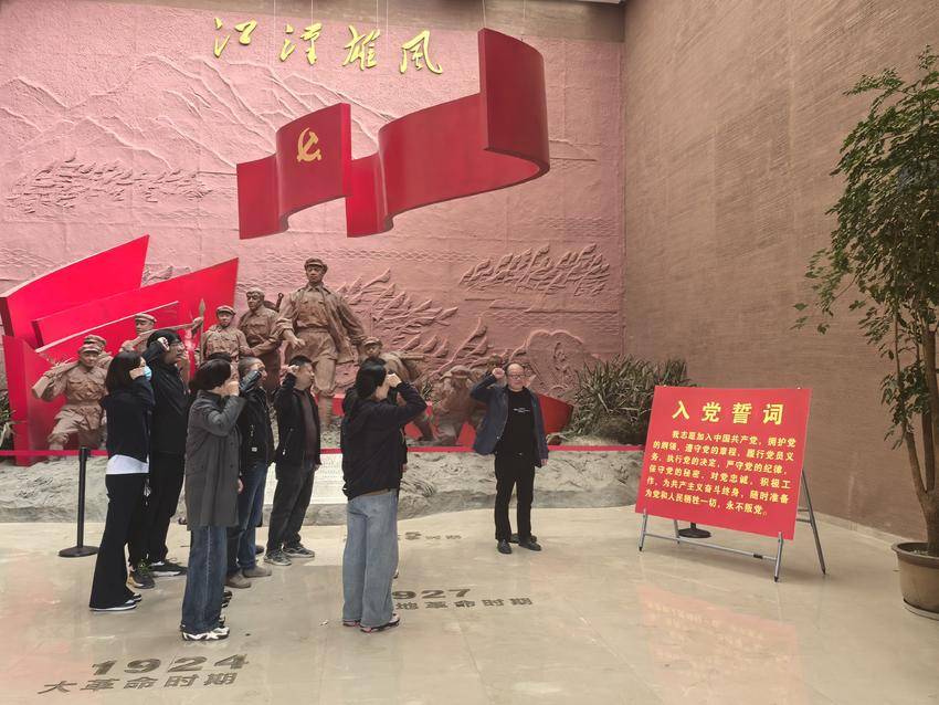 活动伊始,党员代表庄重肃穆地抬起花篮,摆放在革命烈士纪念碑前,党员干部集体默哀,敬慰革命先烈英魂。全体党员干部面向党旗重温入党誓词,铿锵有力的誓言回荡在纪念馆内,彰显了党员们对党的忠诚和为人民谋幸福、为民族谋复兴的坚定信念。