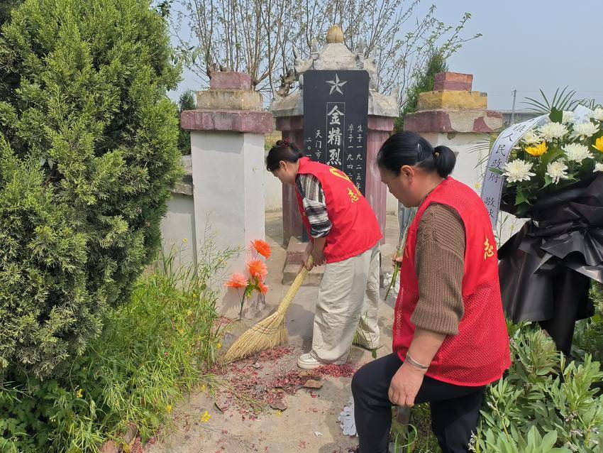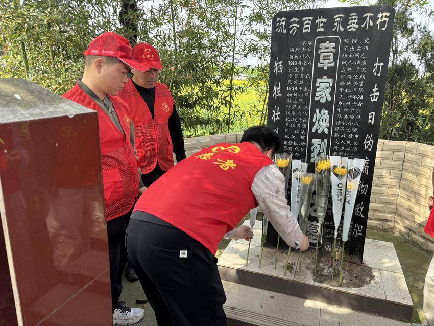 服务站组织志愿服务队前往位于新丰村的尹和清烈士、章家焕烈士墓地,位于陈家巷社区的马连㛅烈士墓地,位于怀坡村的金精烈士墓地,开展了庄重肃穆的祭扫活动。