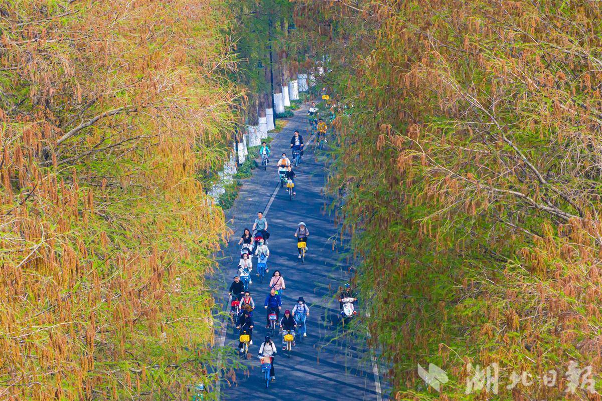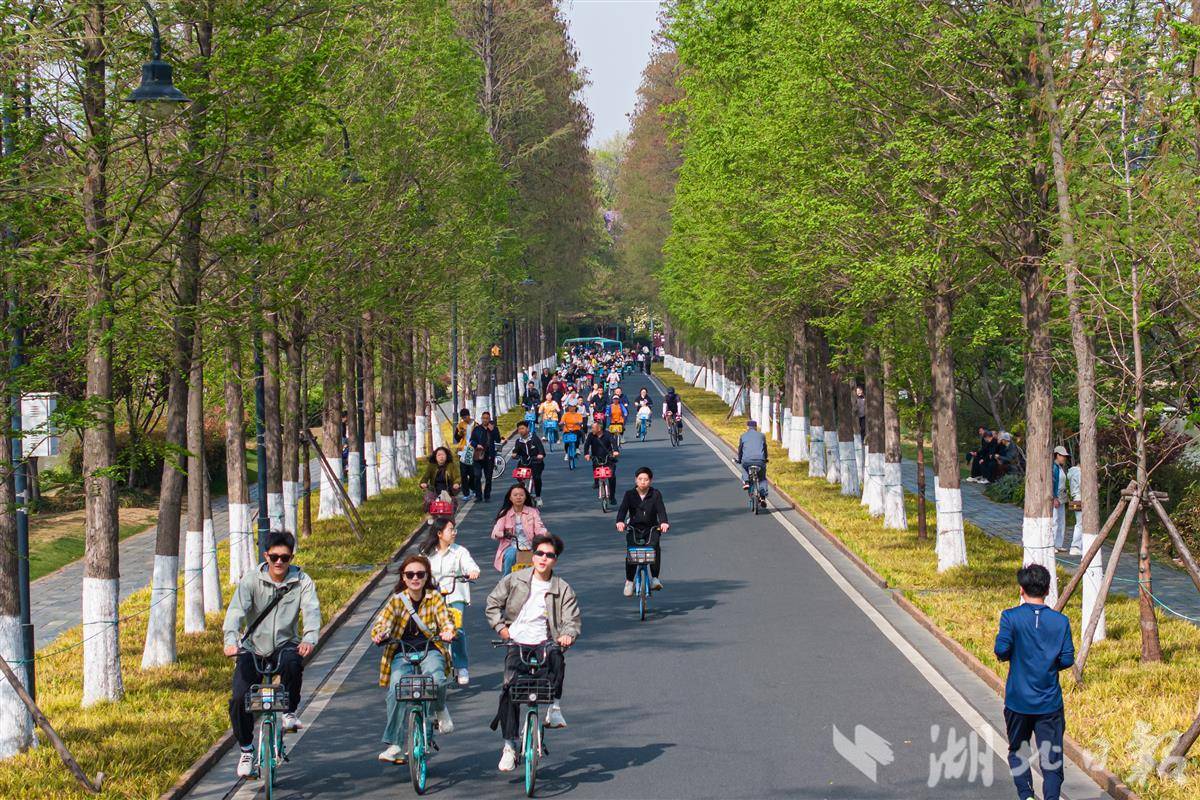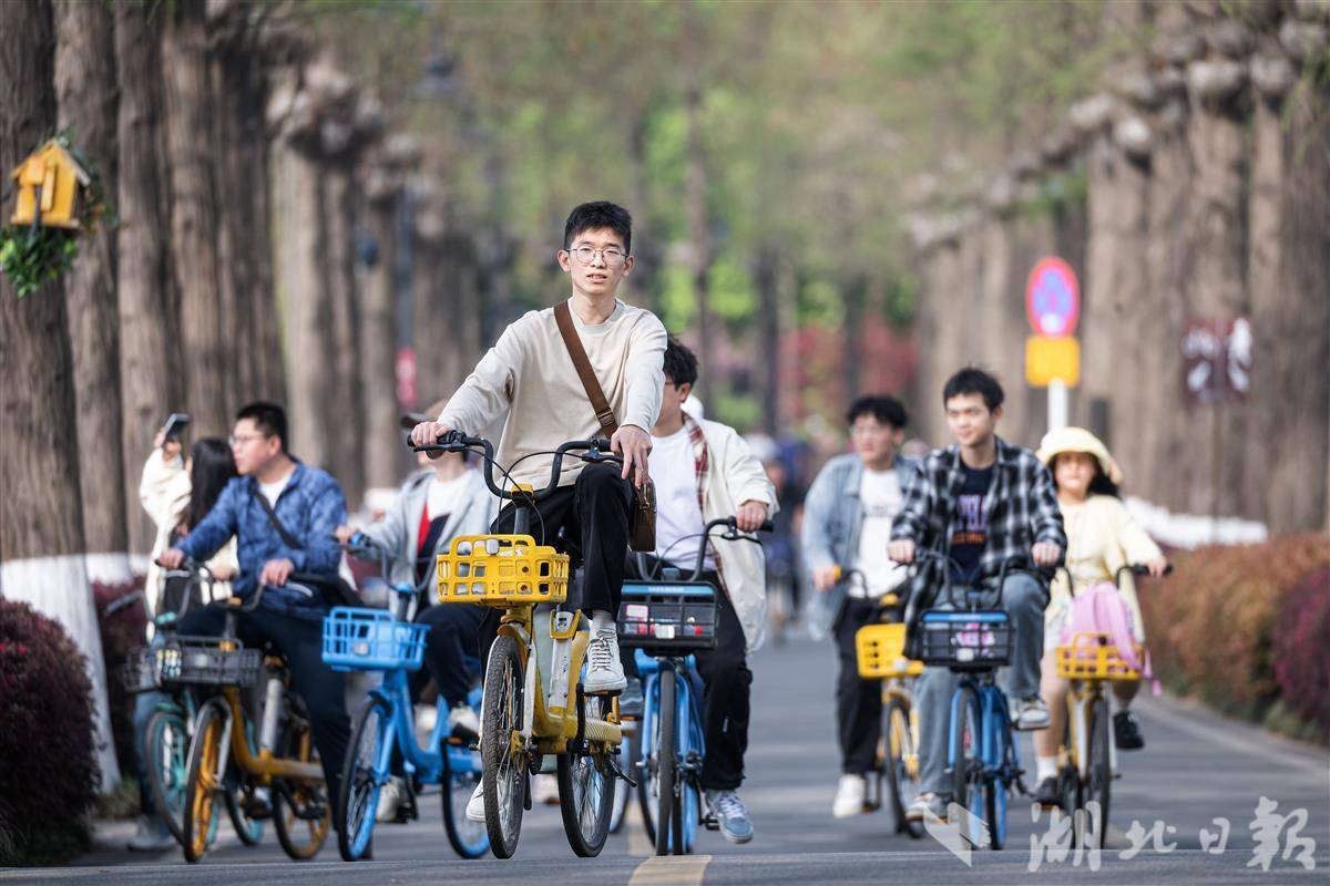 4月5日,清明假期第二天,武汉东湖绿道湖光潋滟绿树成荫,游人如织,前来踏青的游客或悠然散步,或骑行绿道,全身心地拥抱自然,尽情享受着假日的美好时光。(湖北日报全媒记者 任勇 摄)